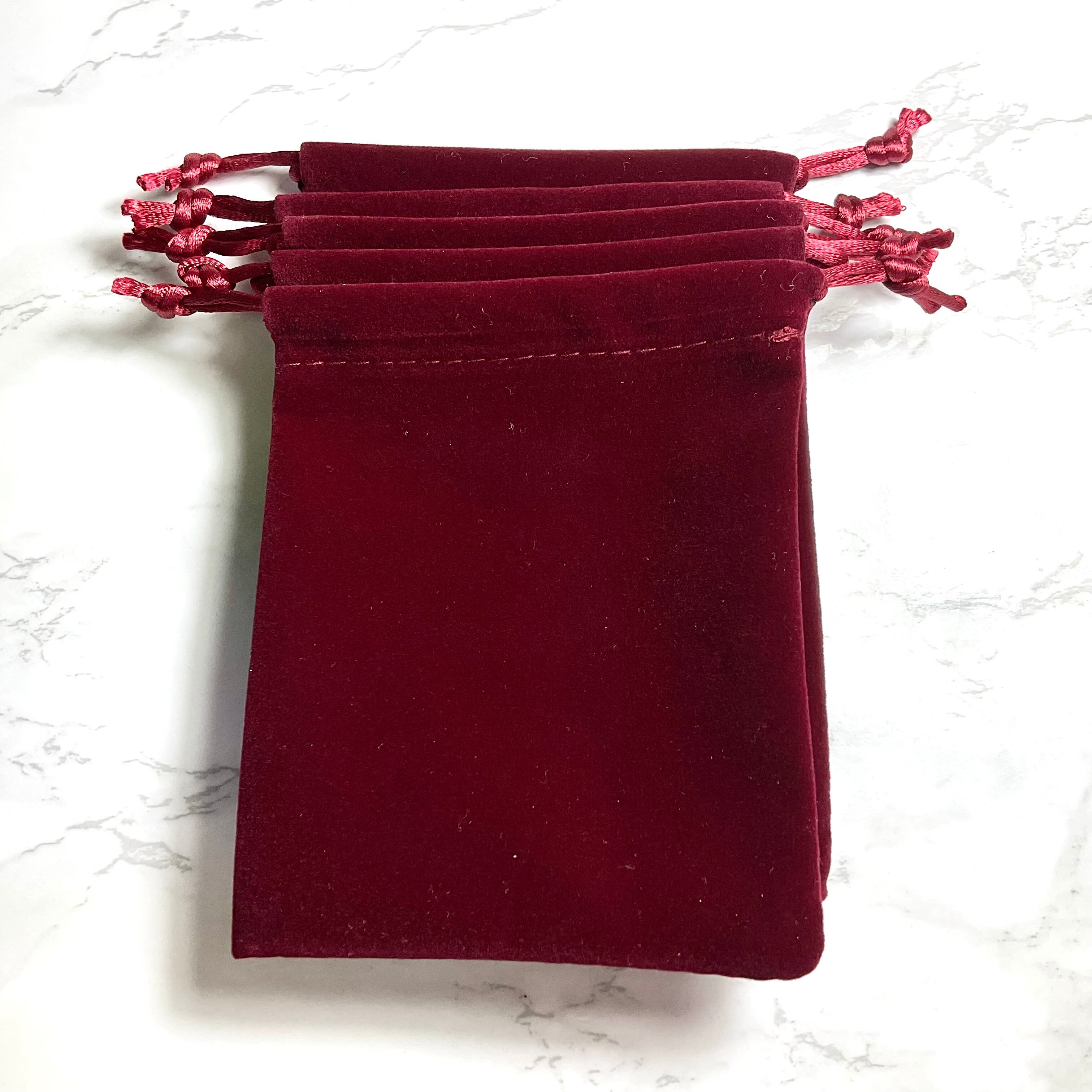 赤、紫、茶色の5枚ずつの巾着のポーチ