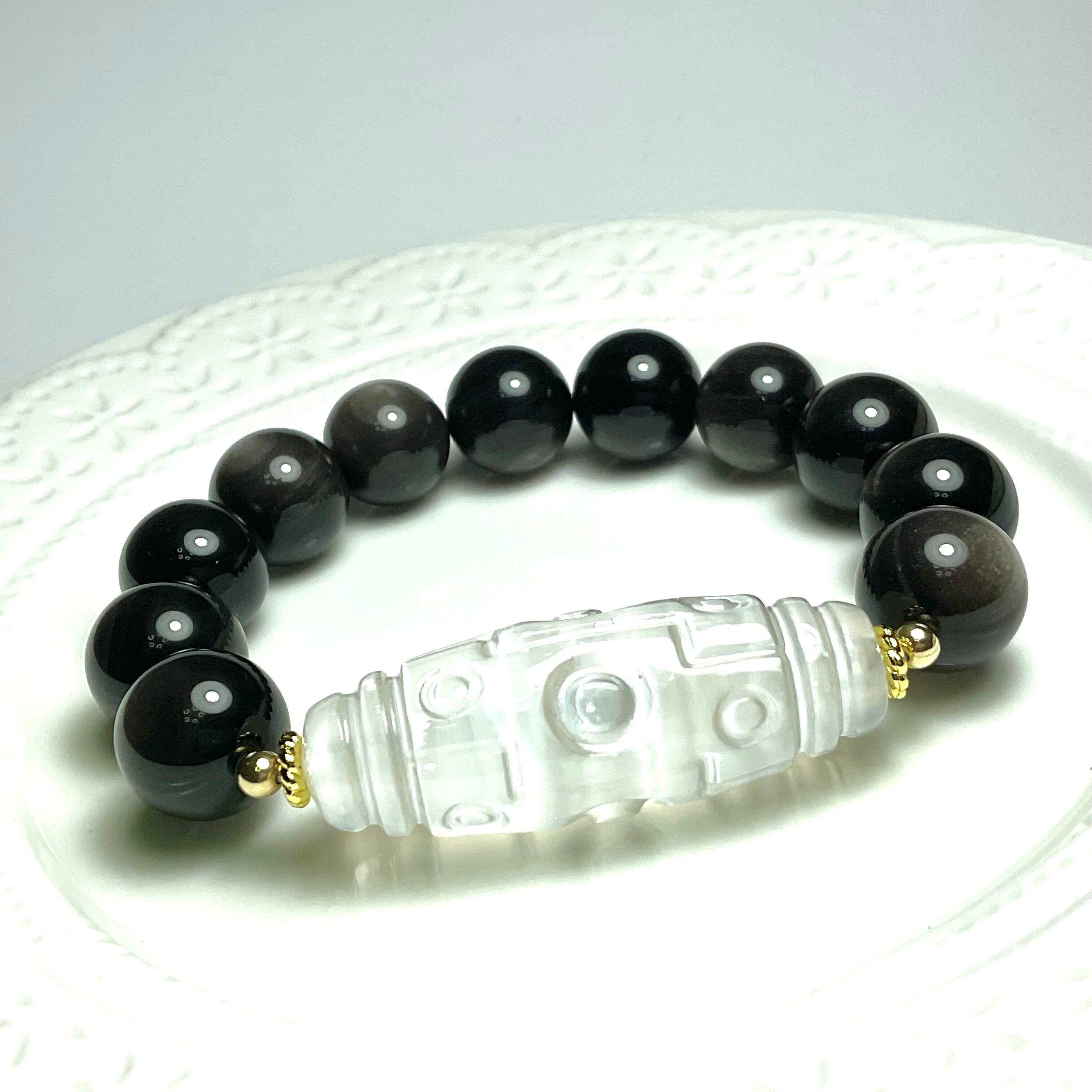 セレナイトの九眼天珠と14mm*シルバーオブシディアンのブレスレット❣️❣️