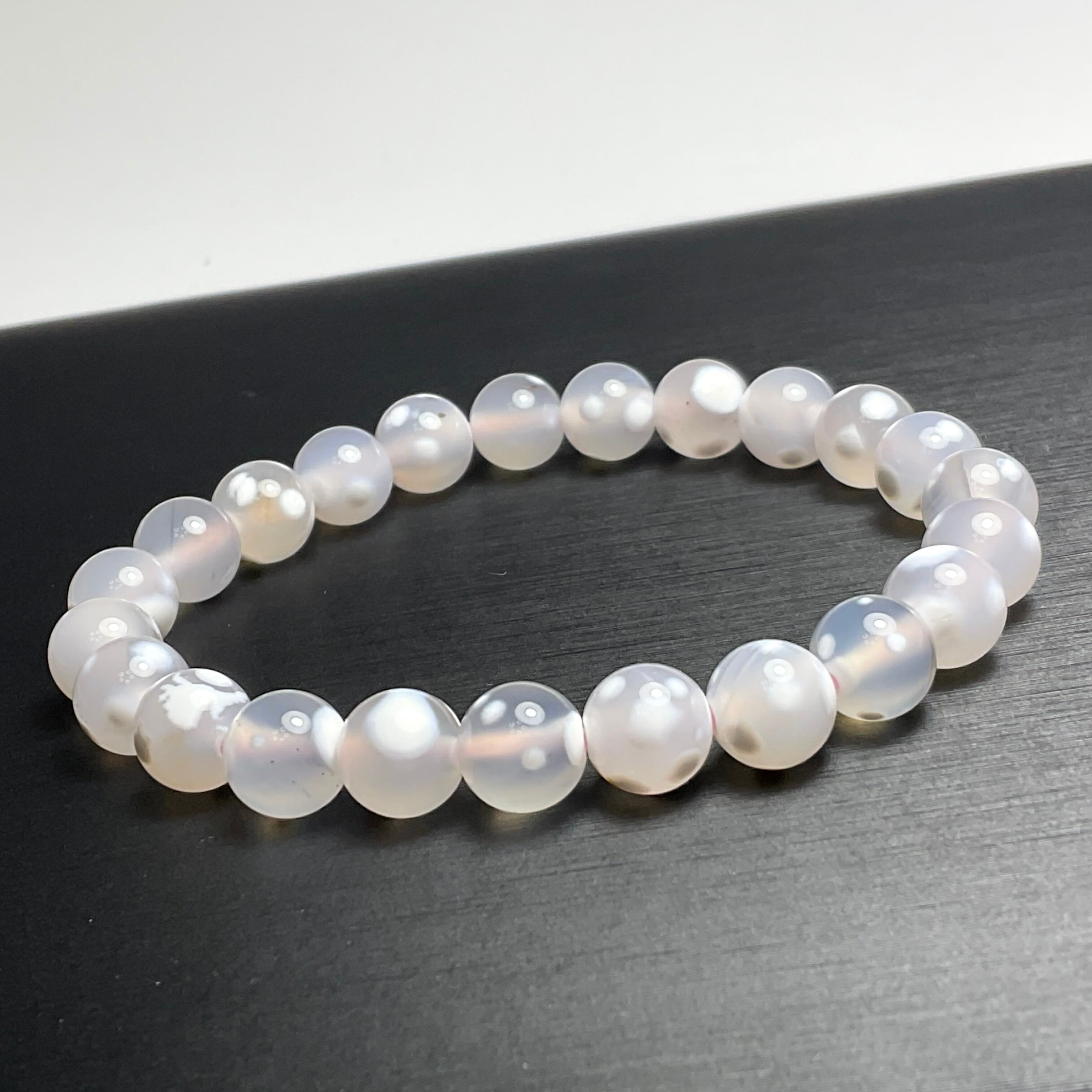 綿雪のような模様 8mmのスポットアゲートのブレスレット❣️❣️