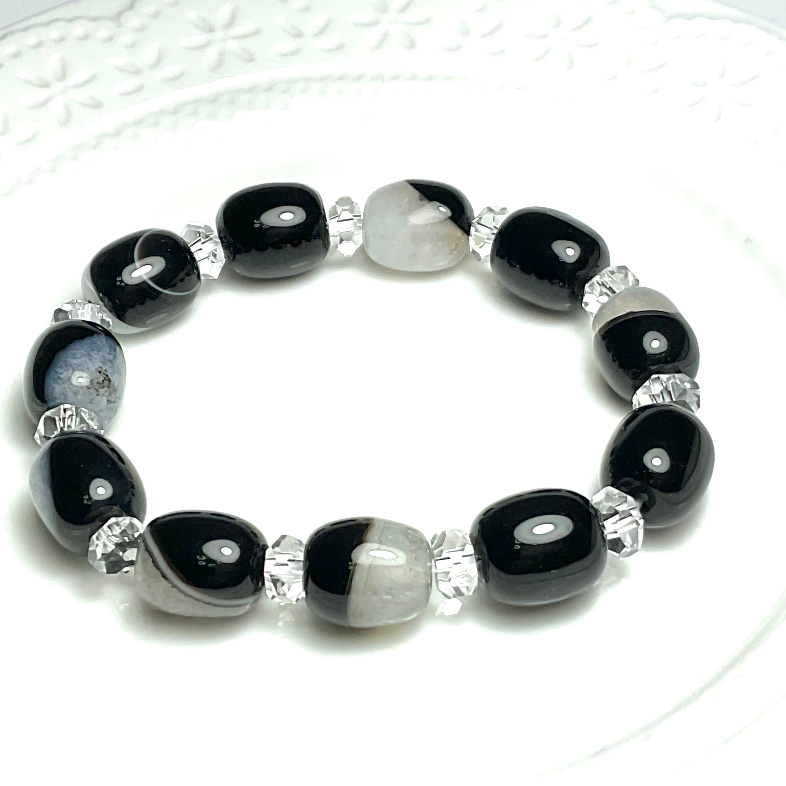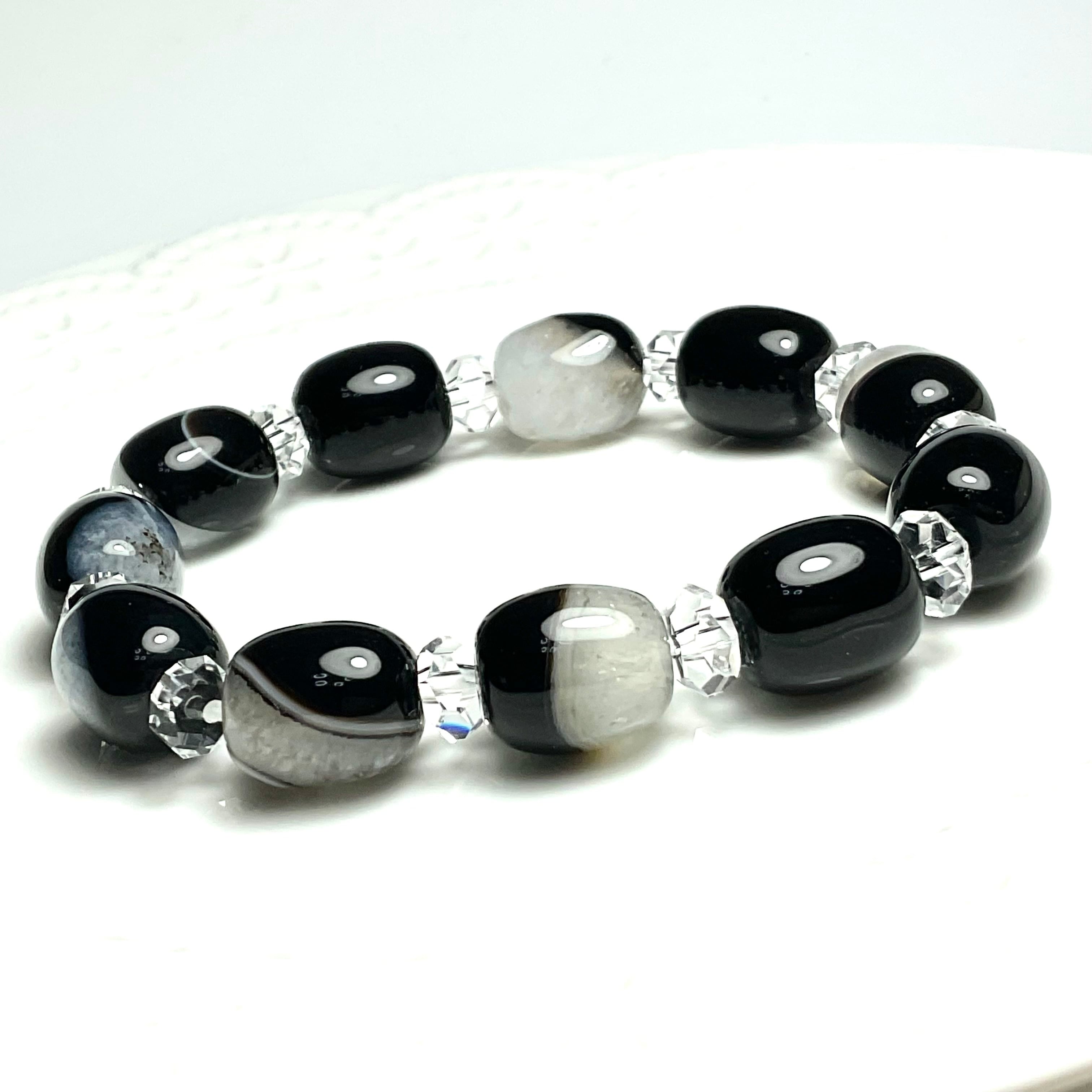 天珠型 水晶の共生の黒瑪瑙と水晶のボタンカットのブレスレット✨✨