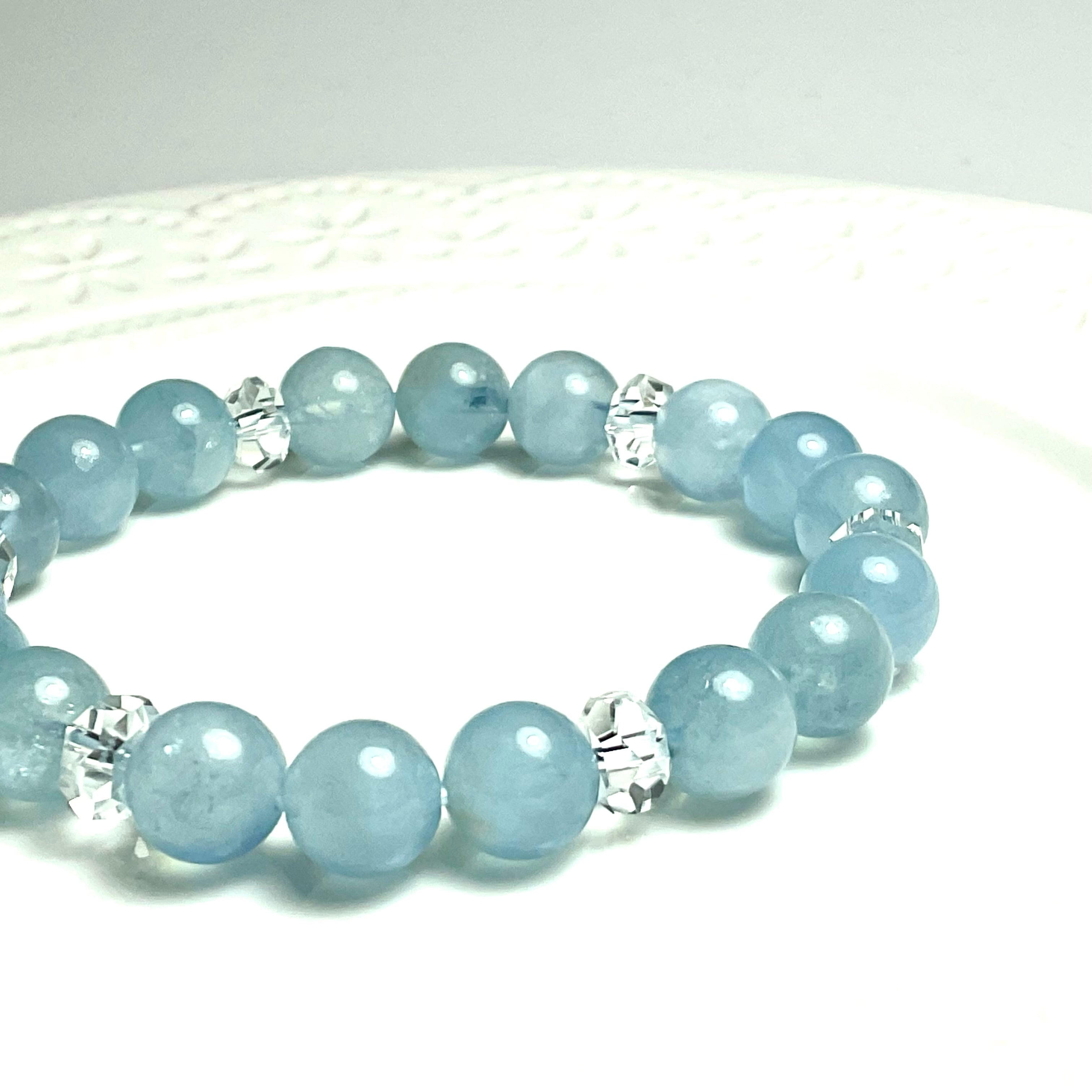 9mmのアクアマリンとボタンカット水晶のブレスレット✨✨