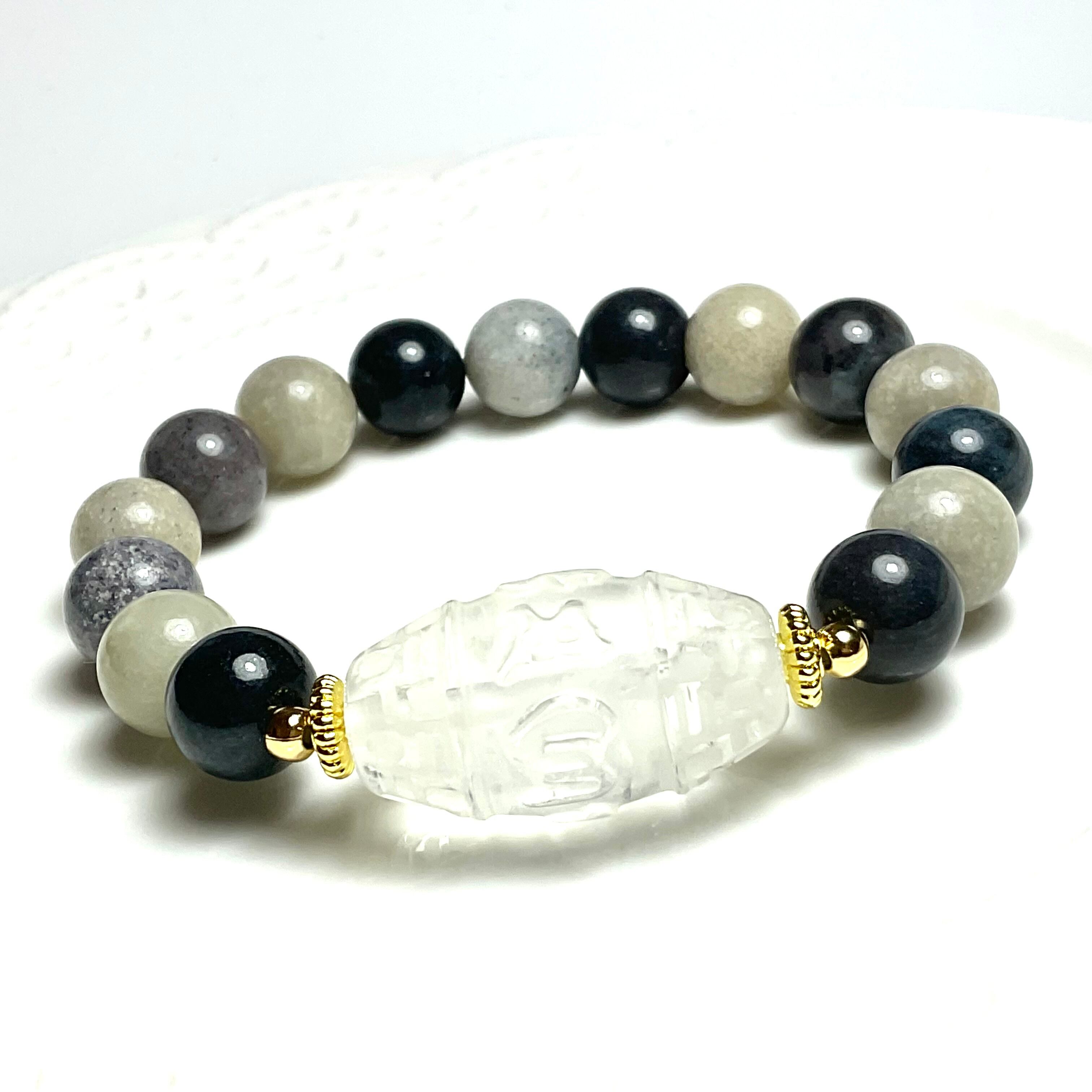 六言真言天珠型と安らぎの石トロレアイトのブレスレット❣️❣️