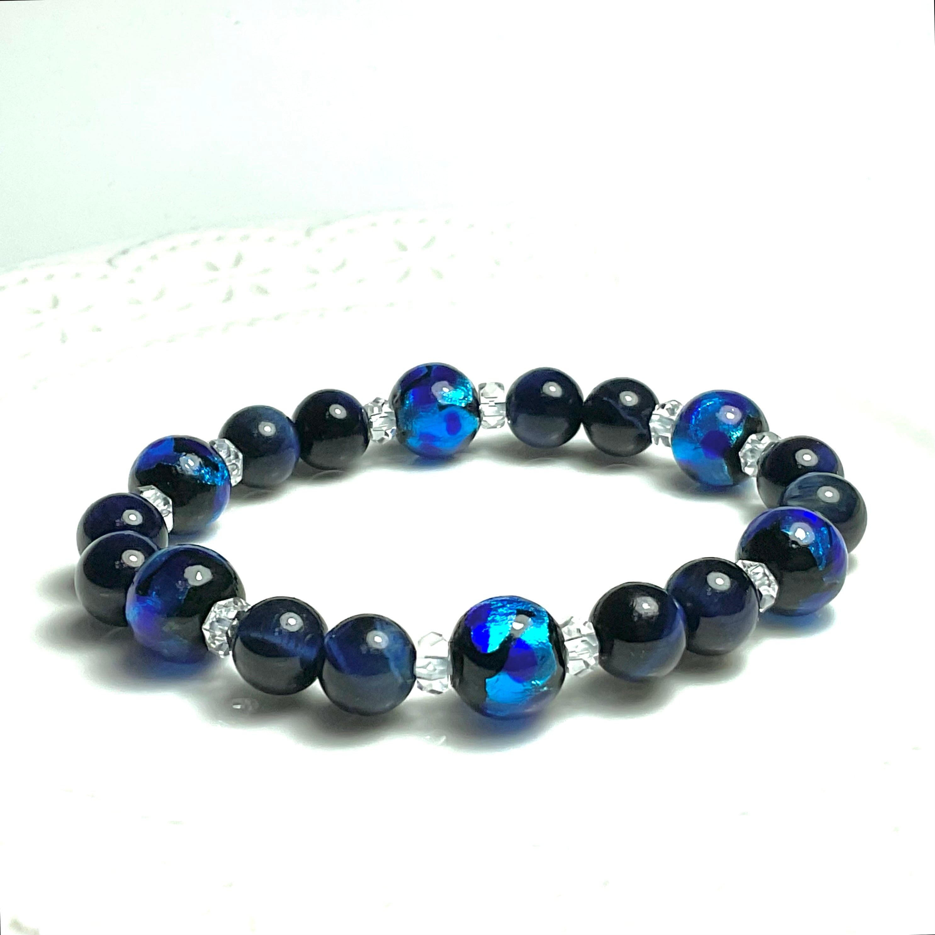 ホタルガラスのトンボ玉とブルータイガーアイのブレスレット⭐️⭐️