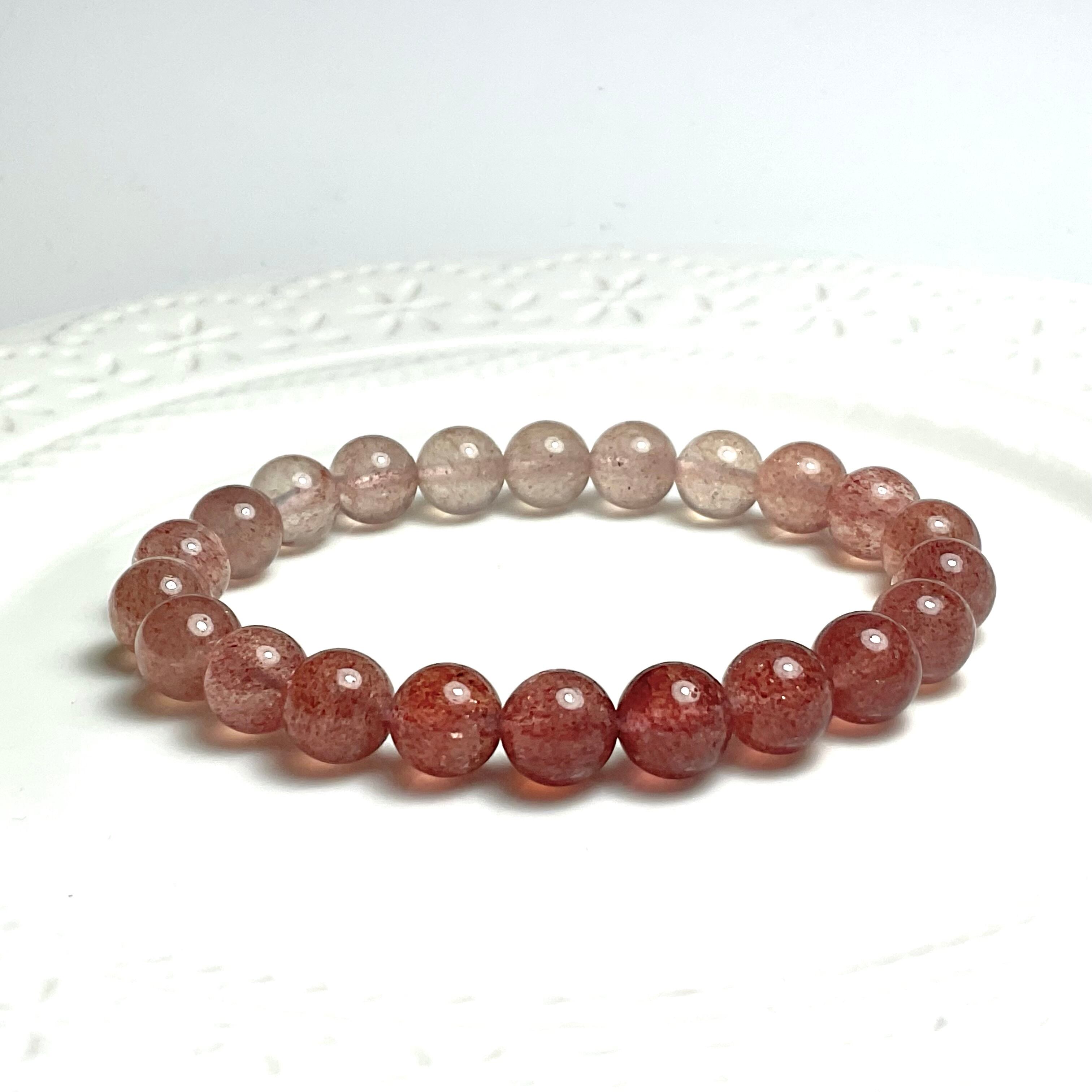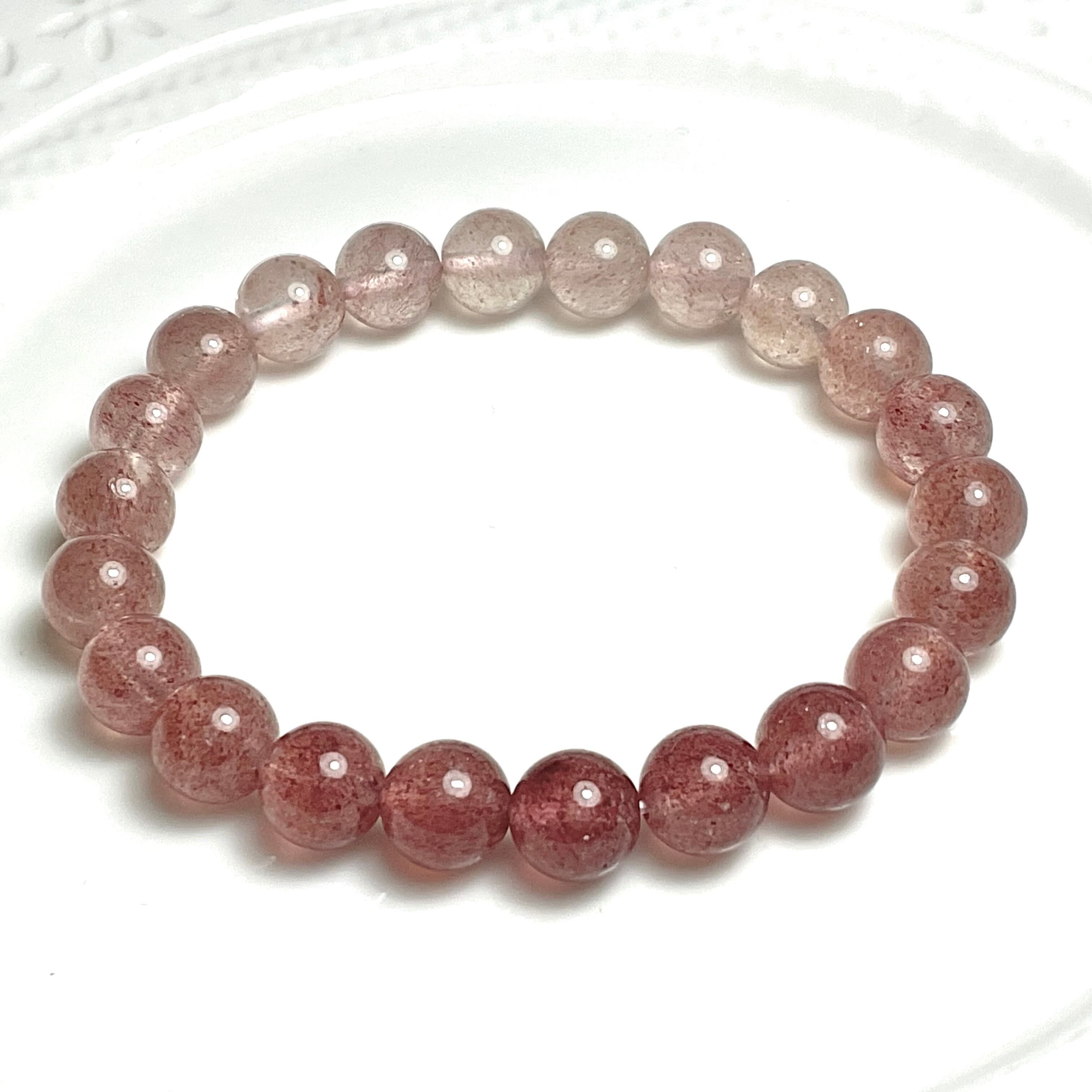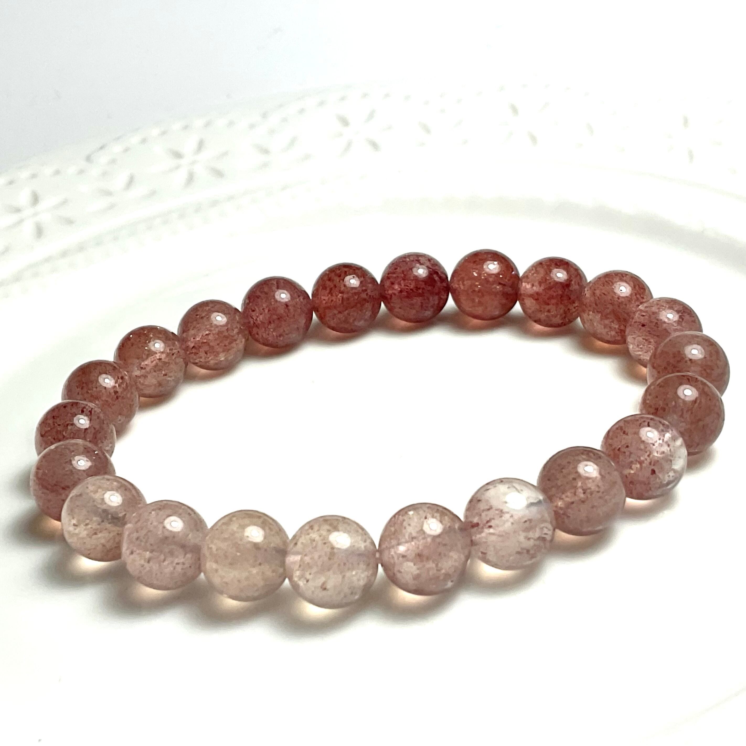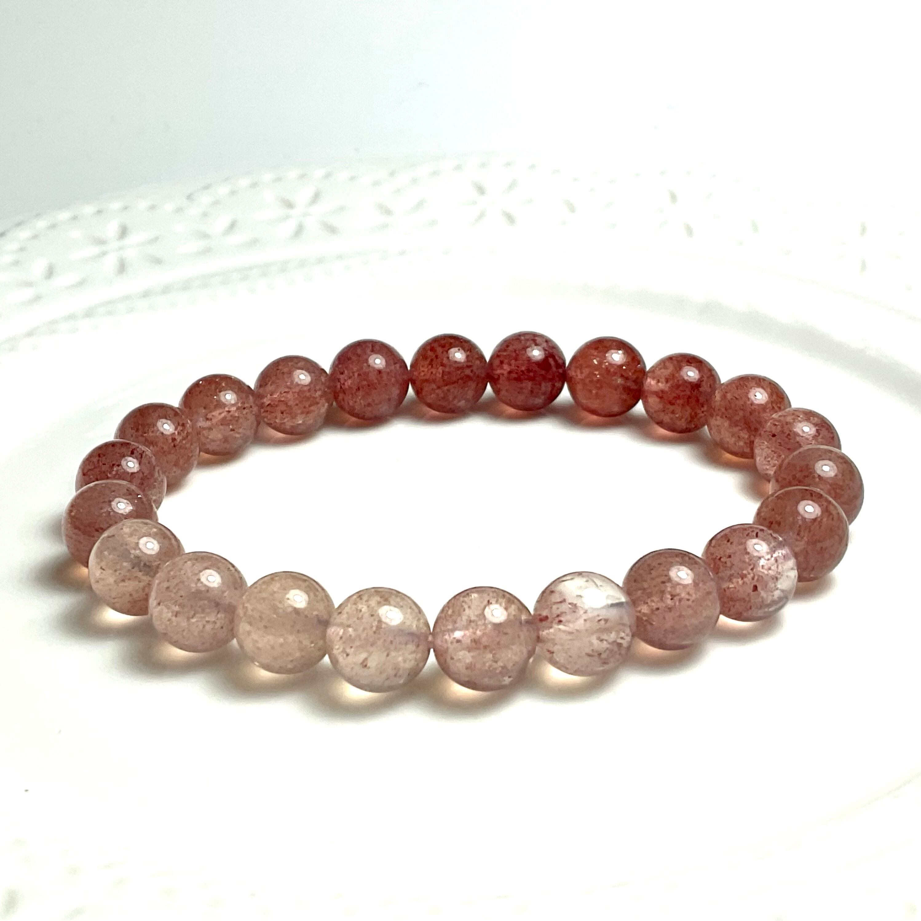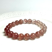水晶に赤色のつぶつぶした結晶(モスコバイト)を内包したモスコバイトインクォーツのブレスレットです。