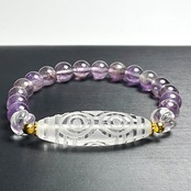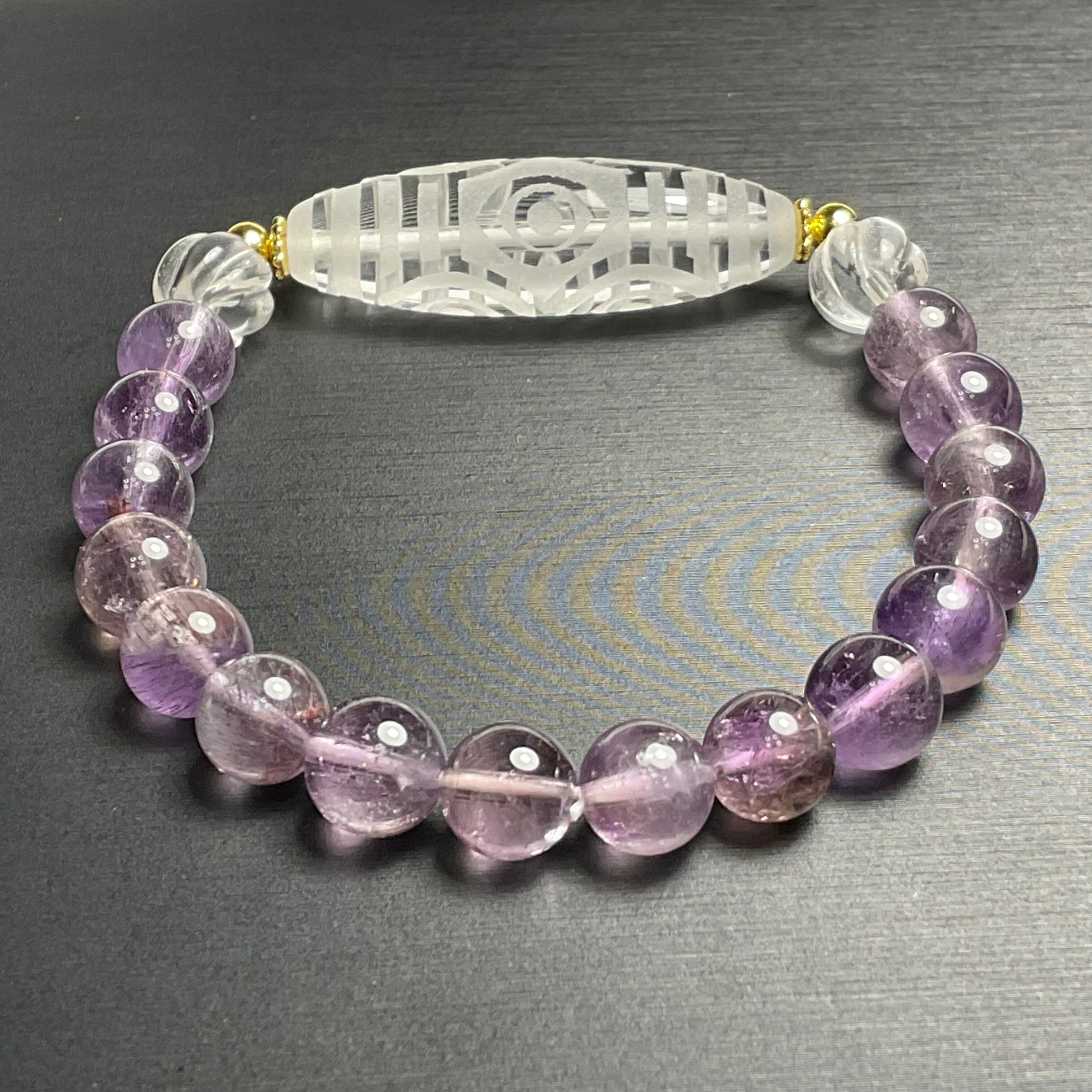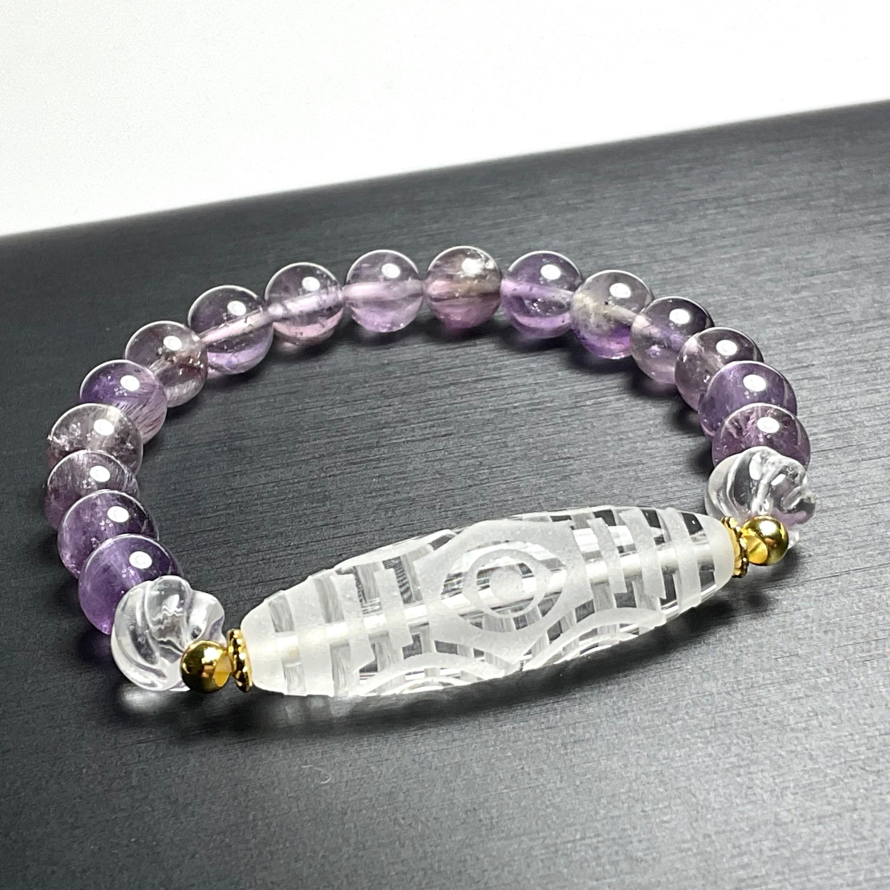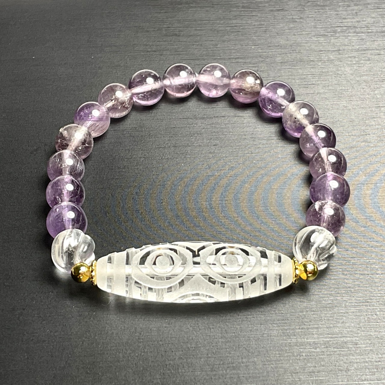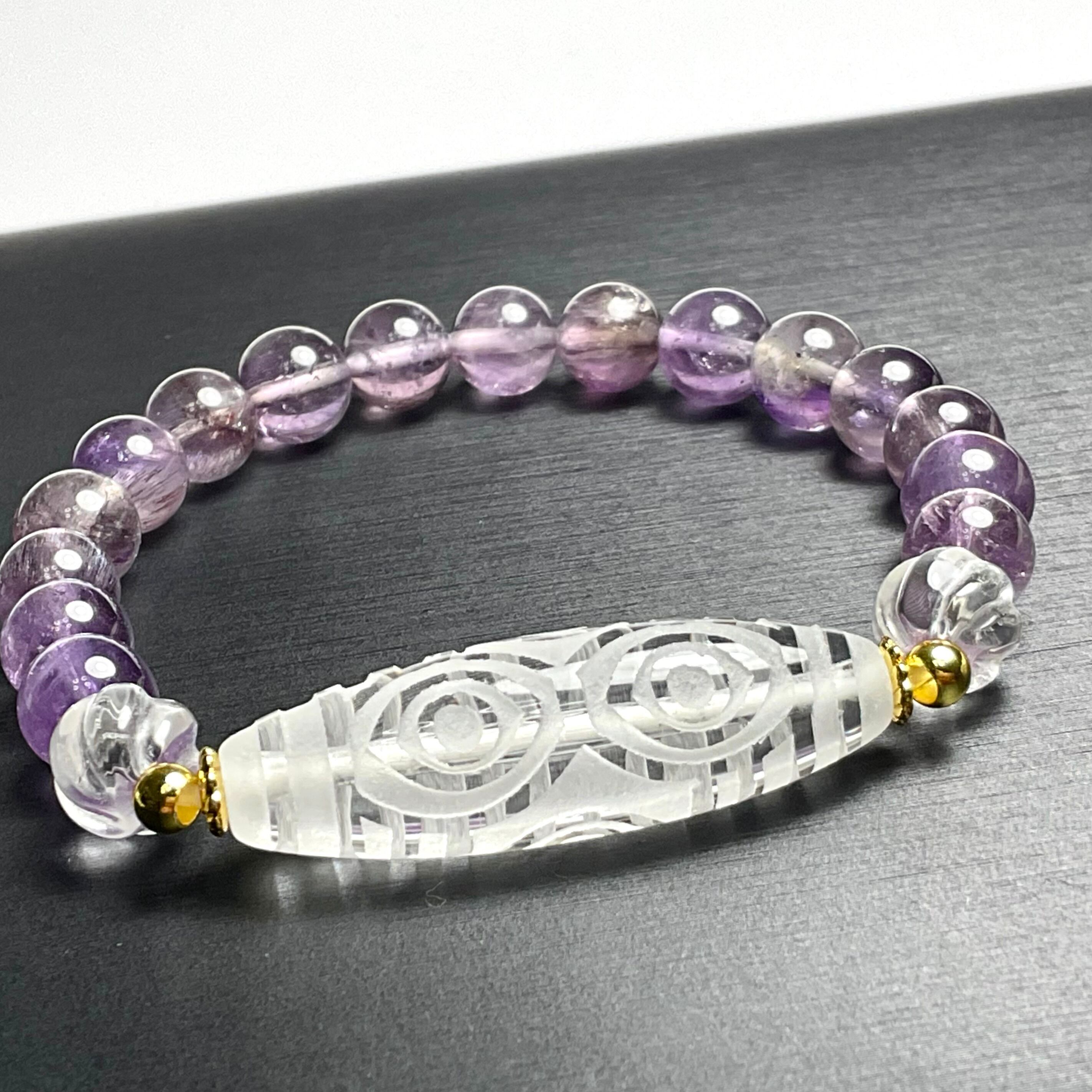 希少な水晶天珠の龍眼天珠と透明感のあるアメジストスーパーセブンの組み合わせです。