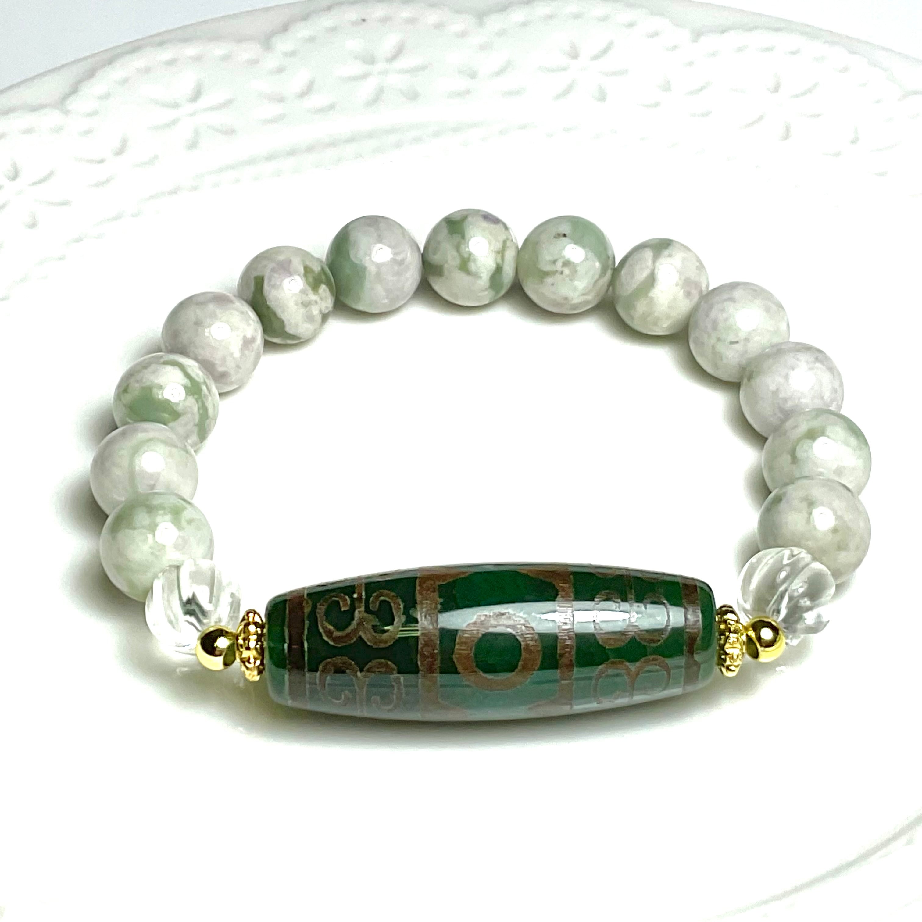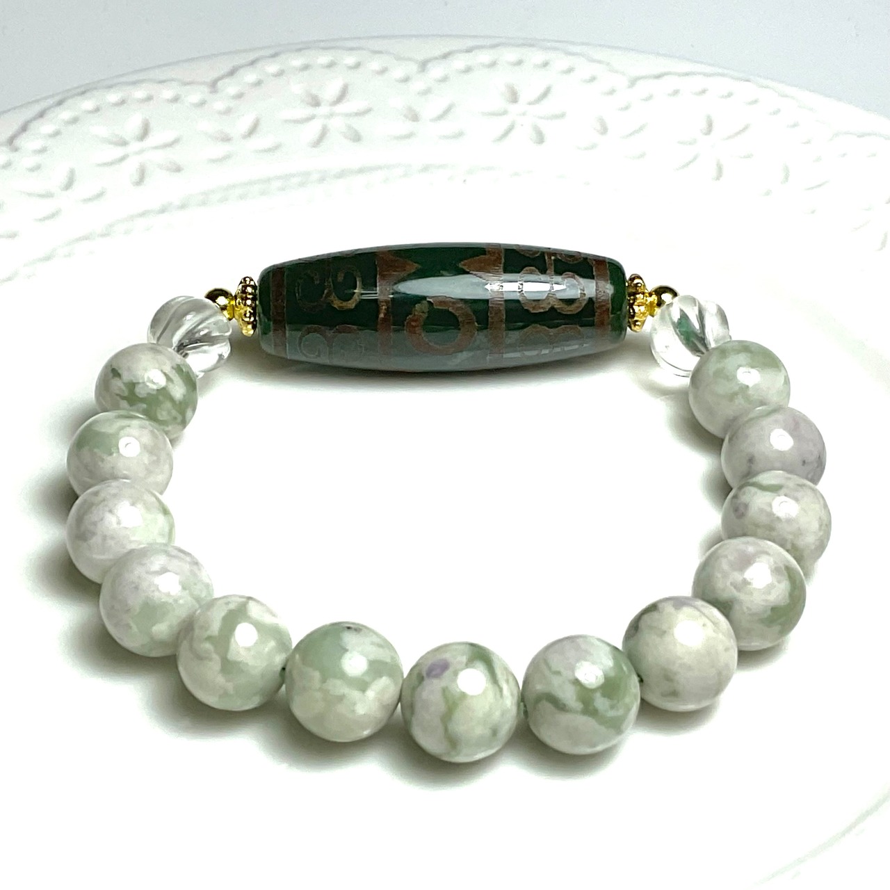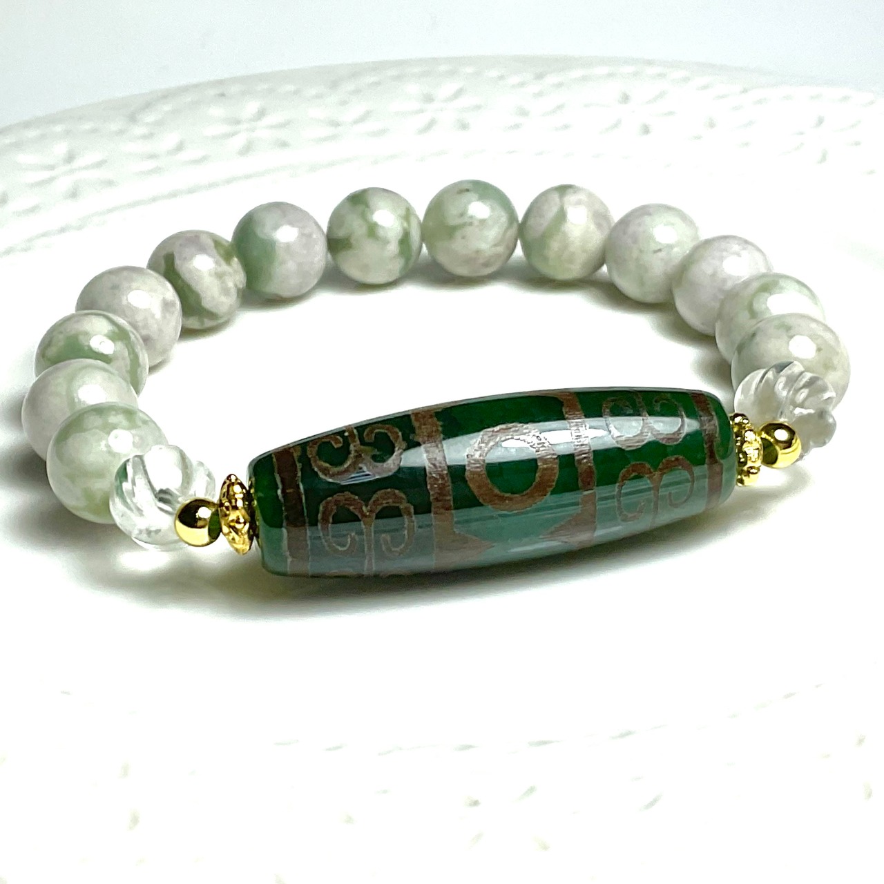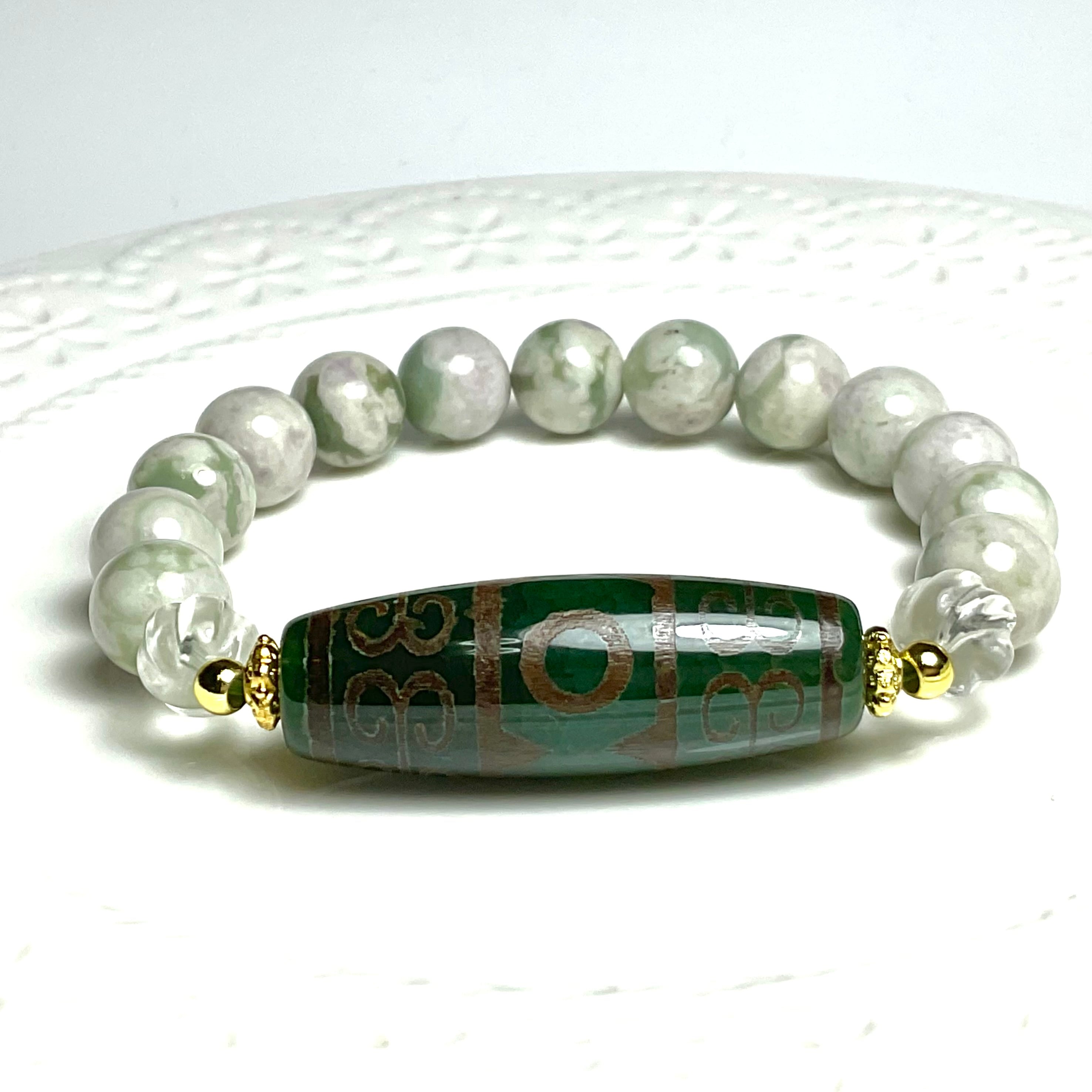 緑龍紋天珠・回紋虎牙三眼天珠とレアな鉱物トレモライトのブレスレット✨✨