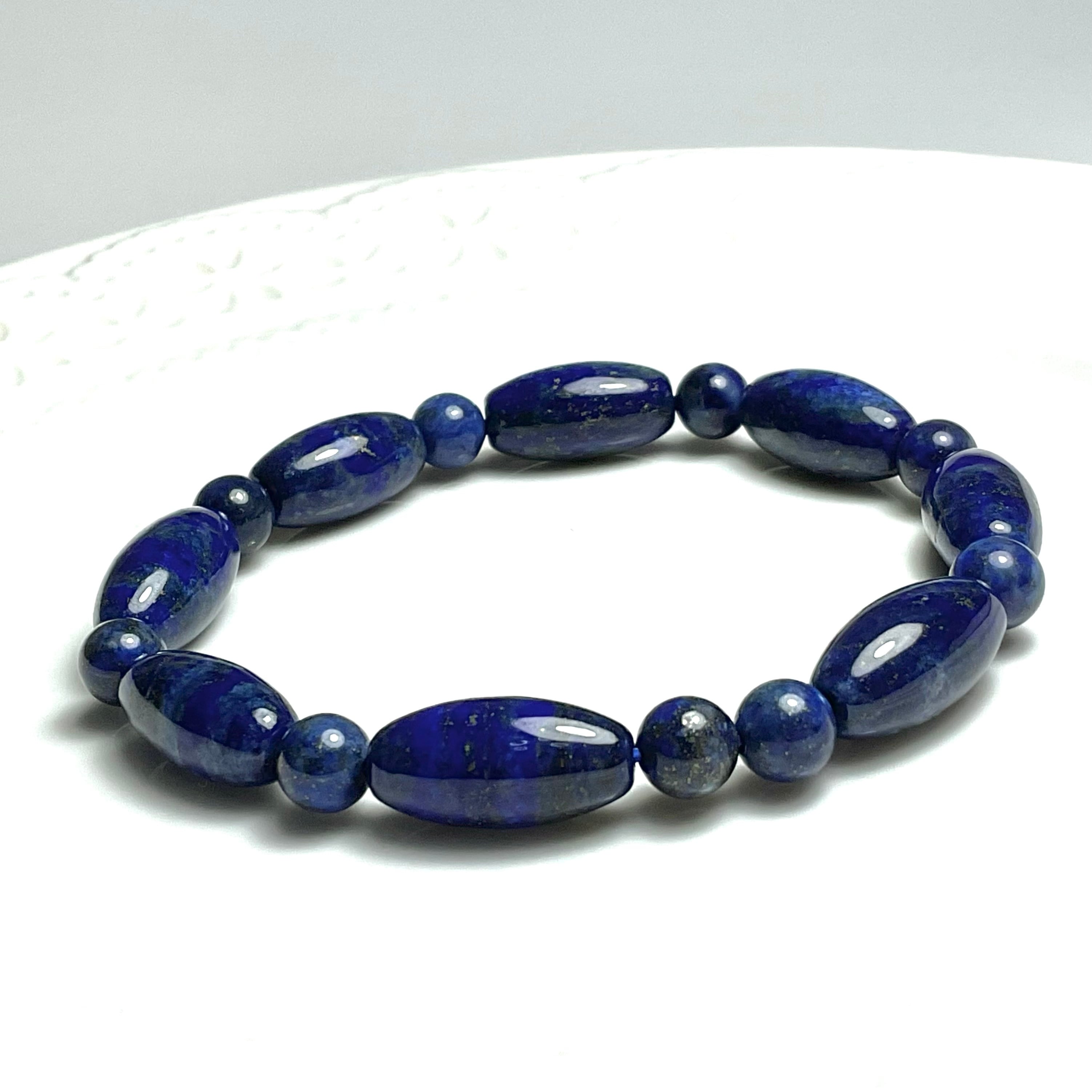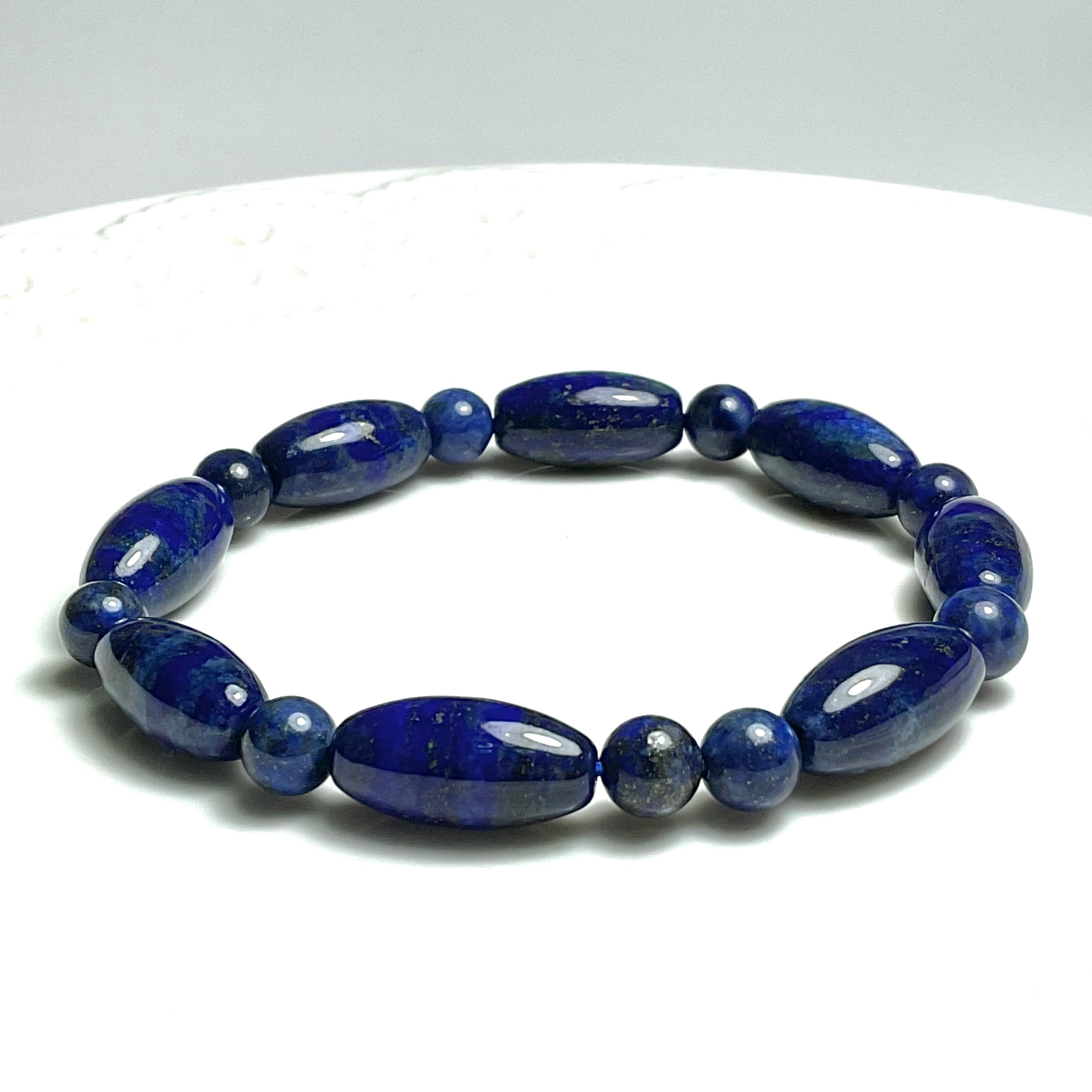 碧い色が魅力的なラピスラズリの天珠型のブレスレット✨✨