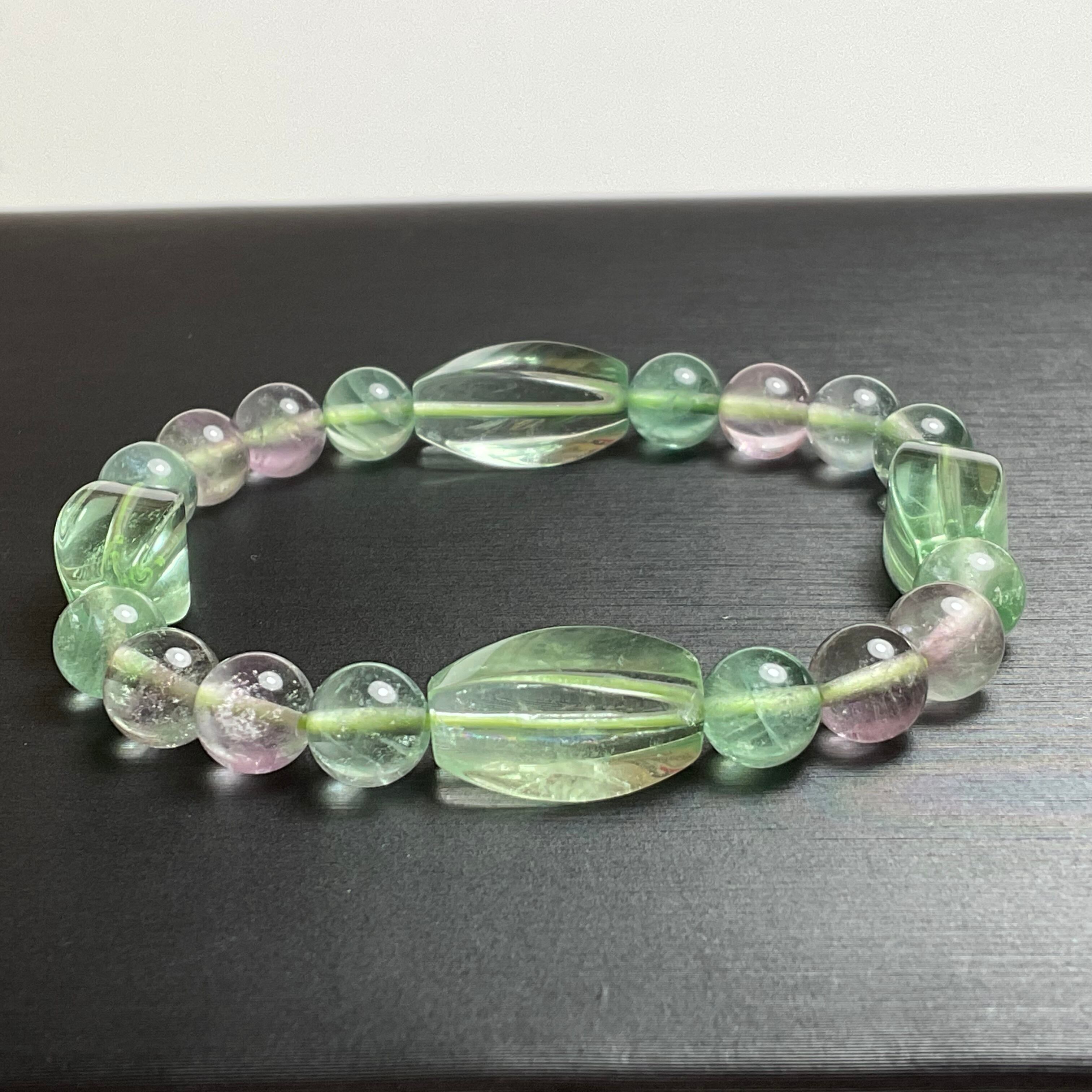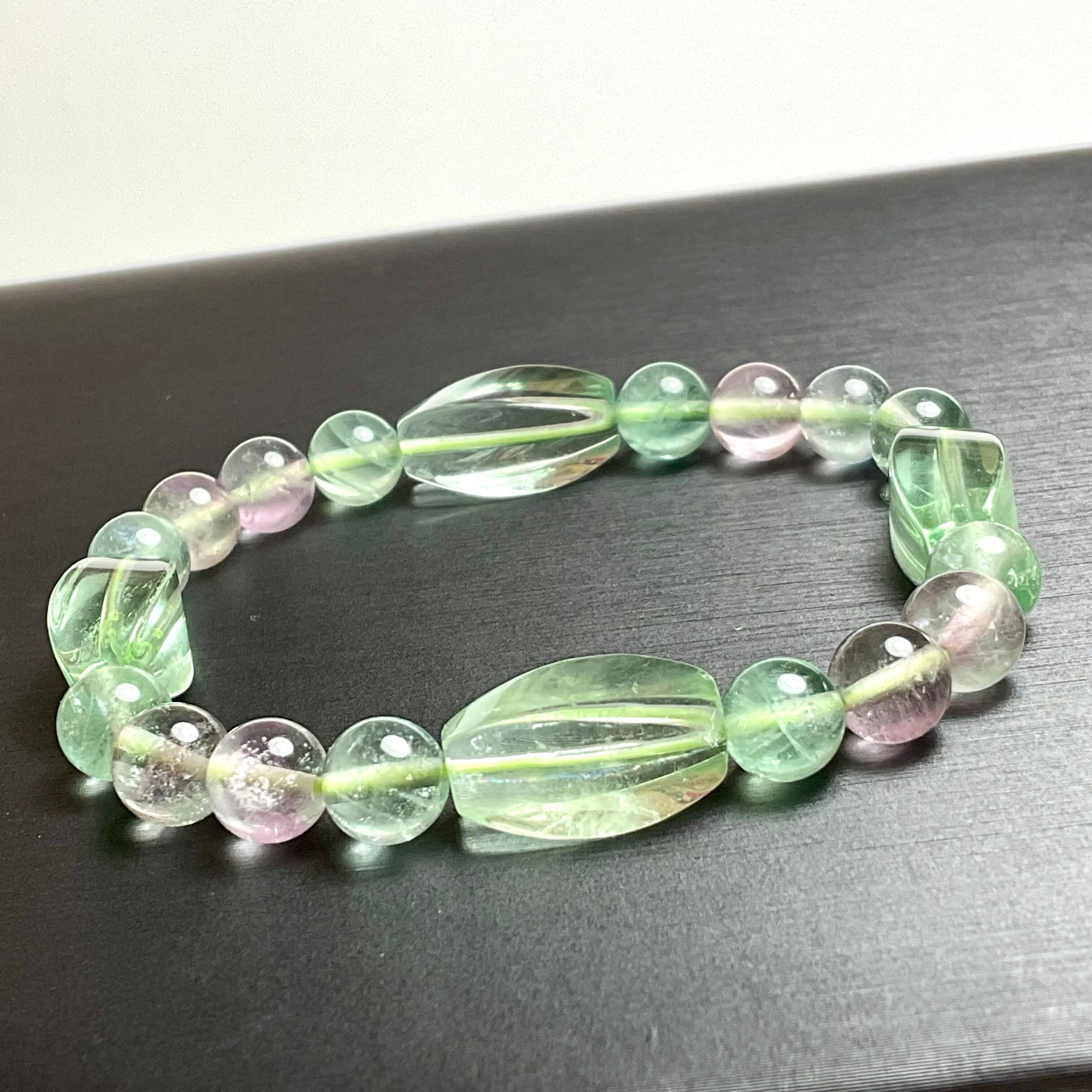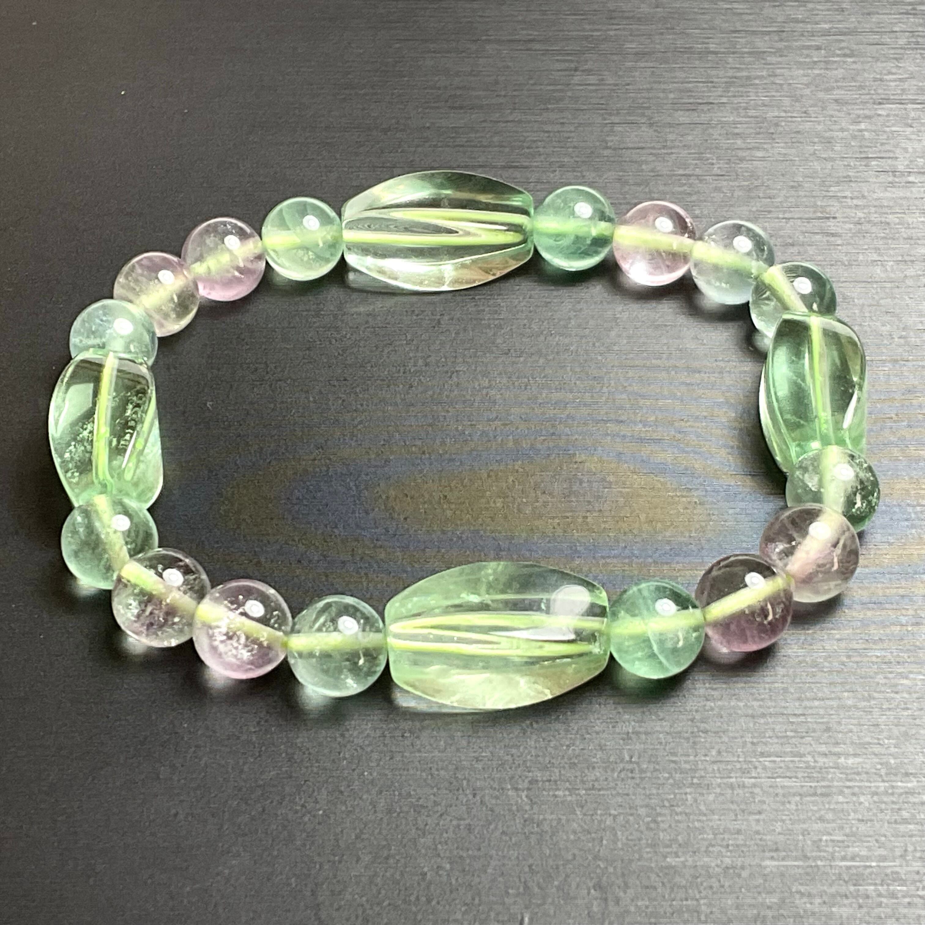 グリーンフローライトのツイストライスカットのブレスレット❣️❣️