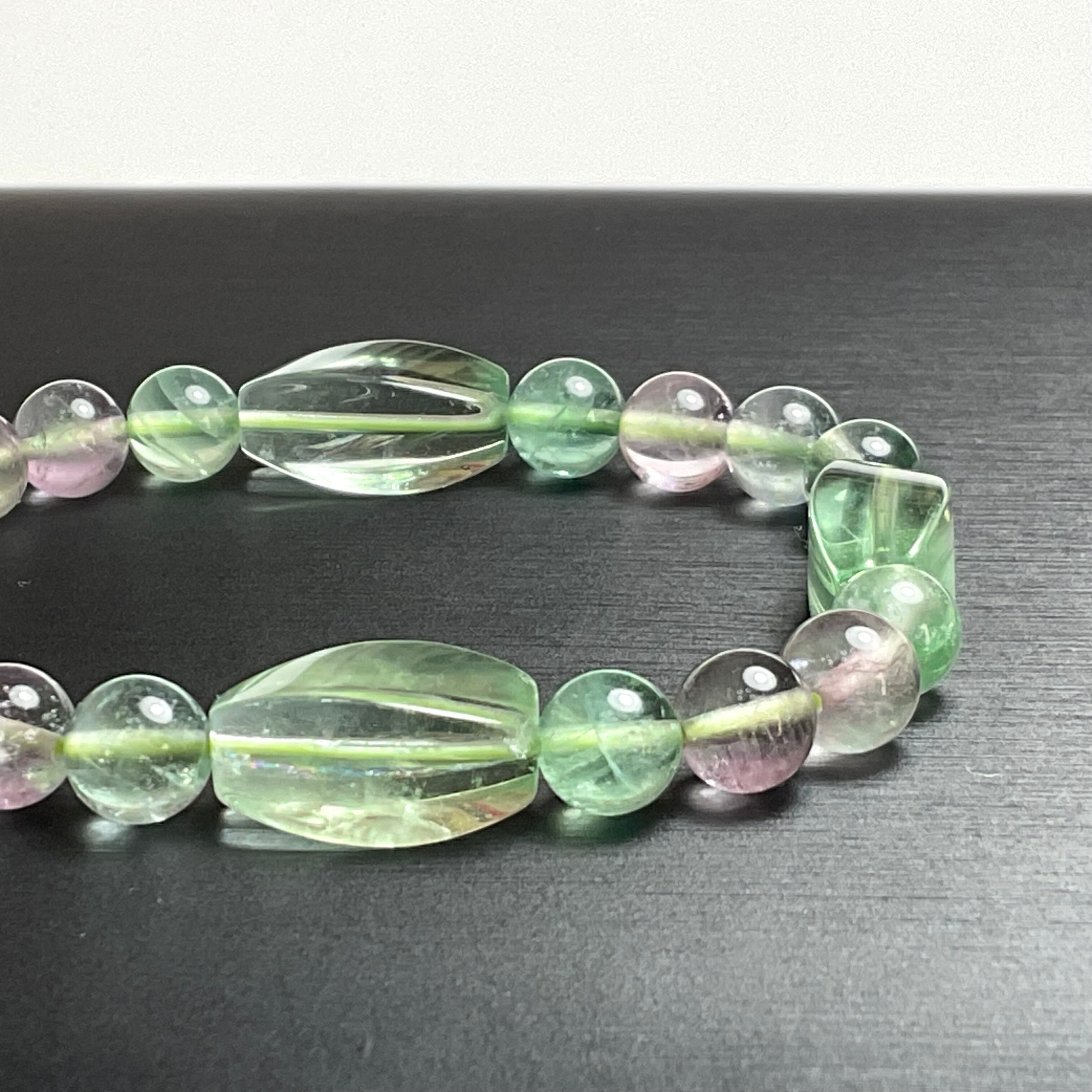 グリーンフローライトのツイストライスカットとパープルとグリーンのフローライトの組み合わせです✨✨