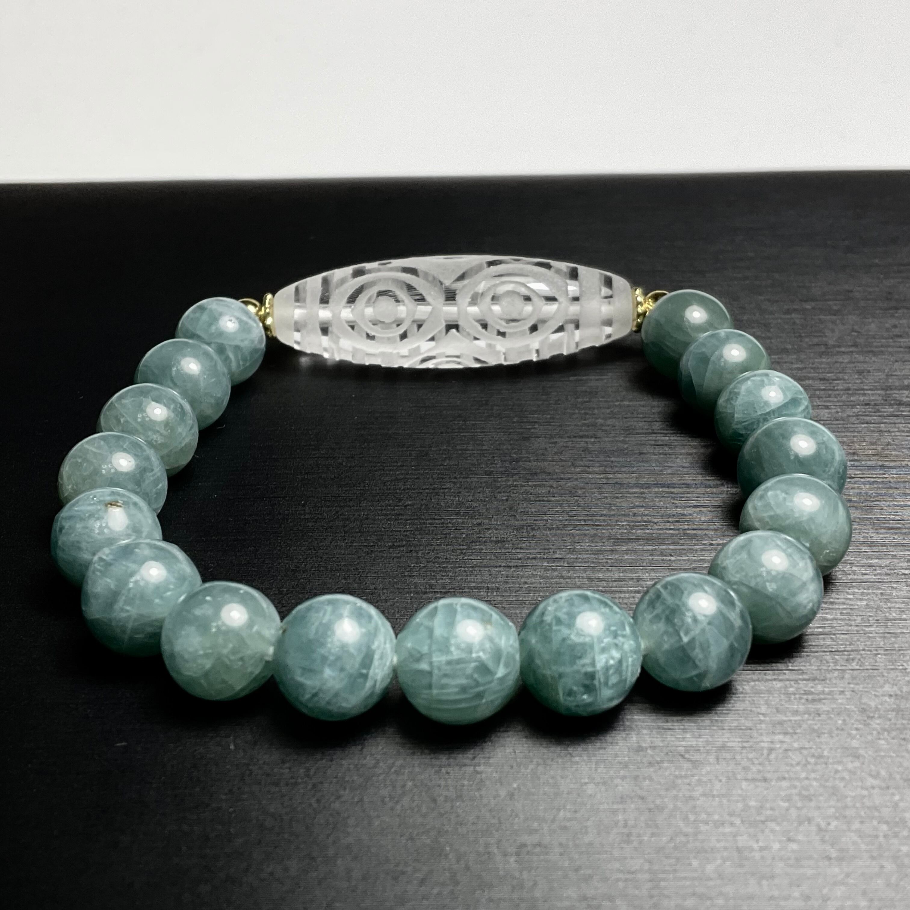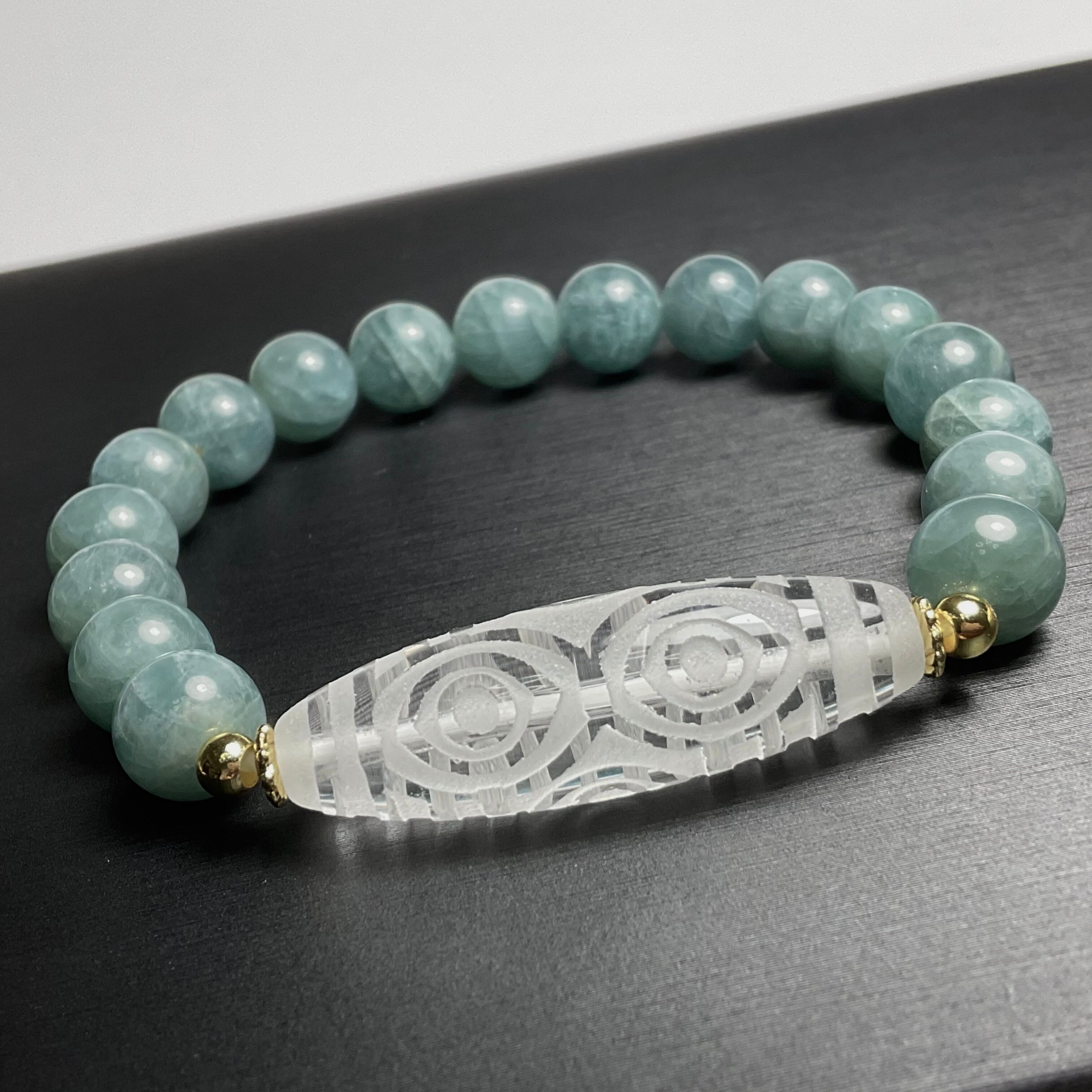 水晶天珠・龍眼天珠と9mm*グリーンアパタイトのブレスレット❣️