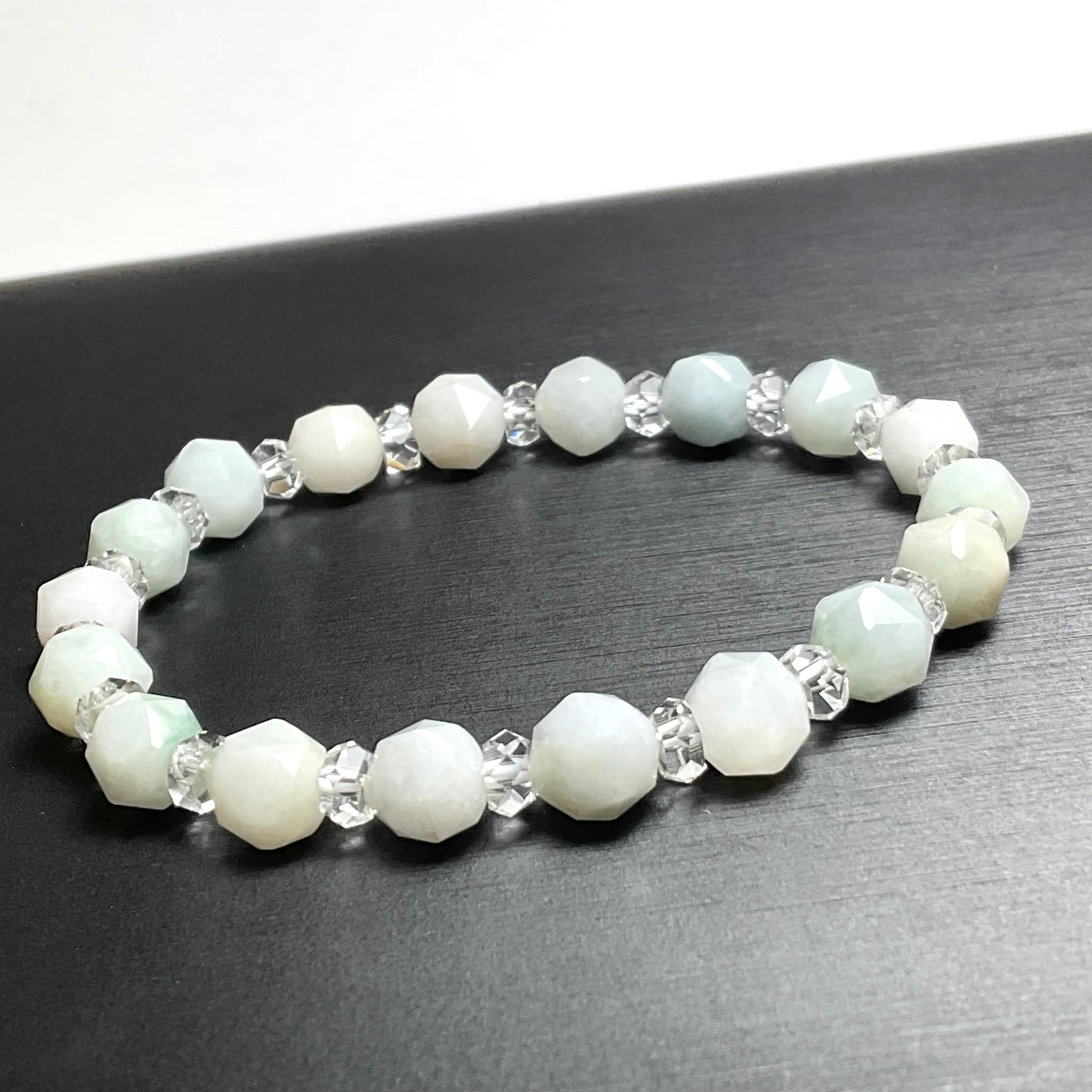 8mmのスターカットの翡翠とキラキラなボタンカット水晶のブレスレットです。