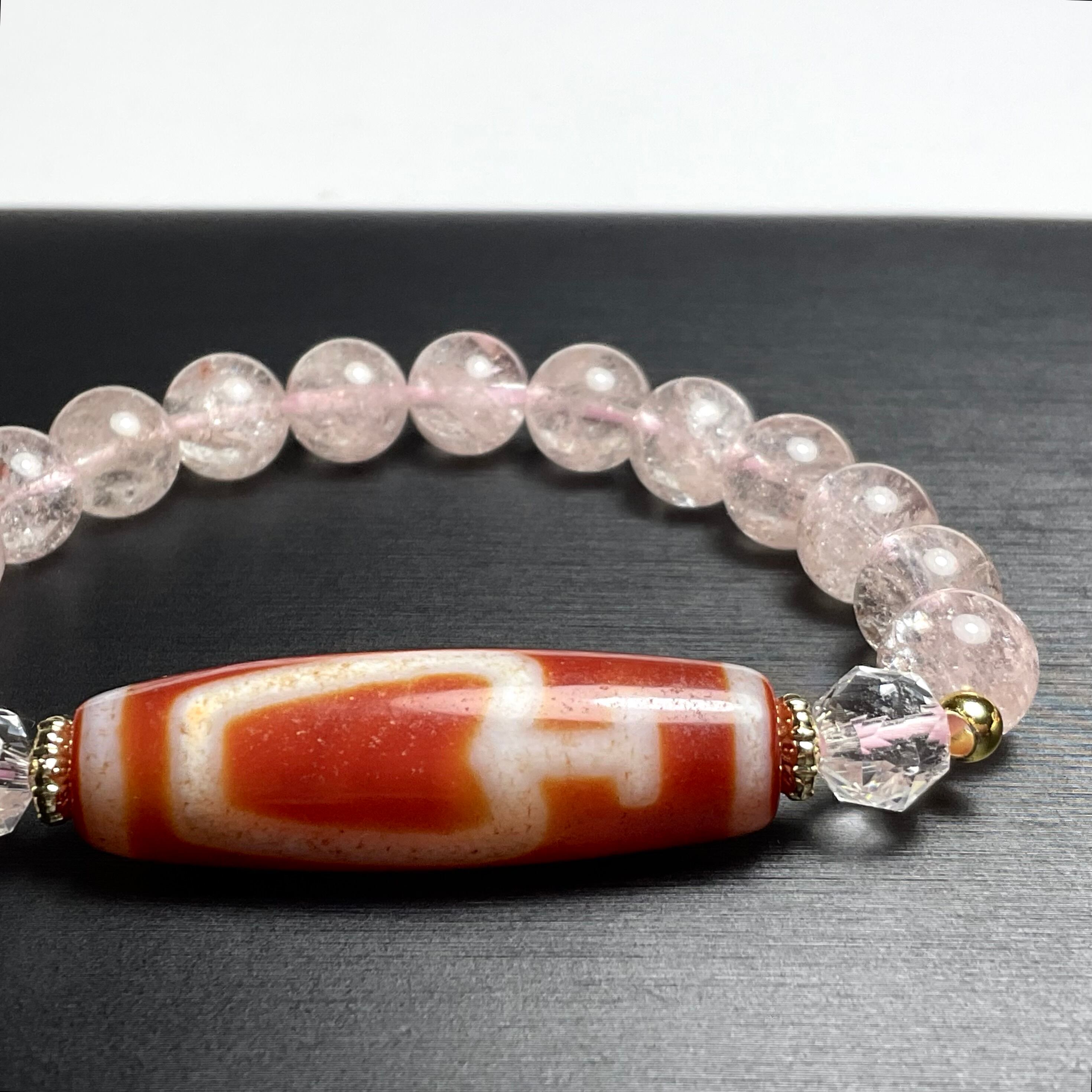 紅天珠の宝瓶天珠とほんのりピンクのライモナイトインクォーツの組み合わせです❣️