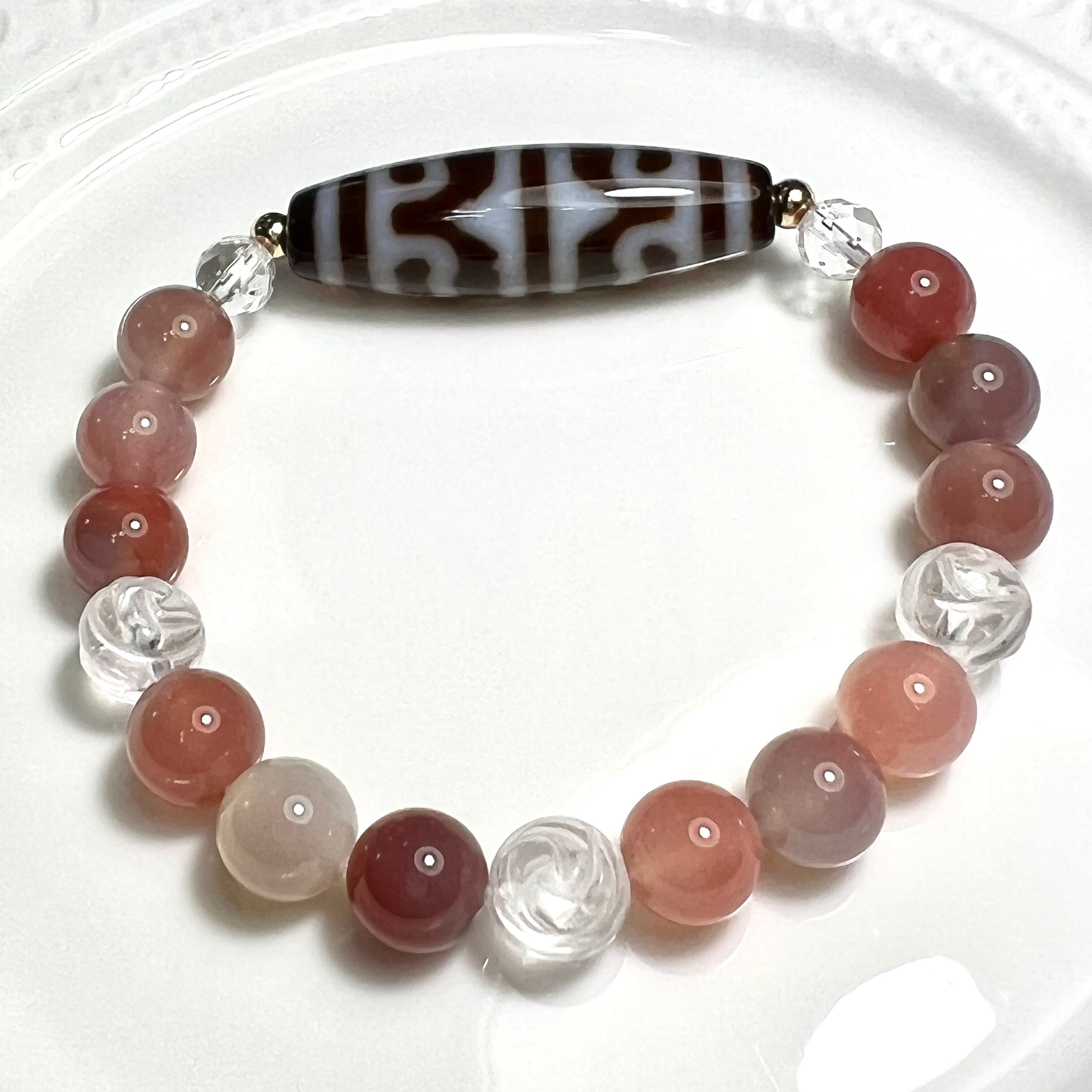 虎牙蓮花天珠と四川産塩原瑪瑙とと薔薇彫り水晶ののブレスレット❣️❣️