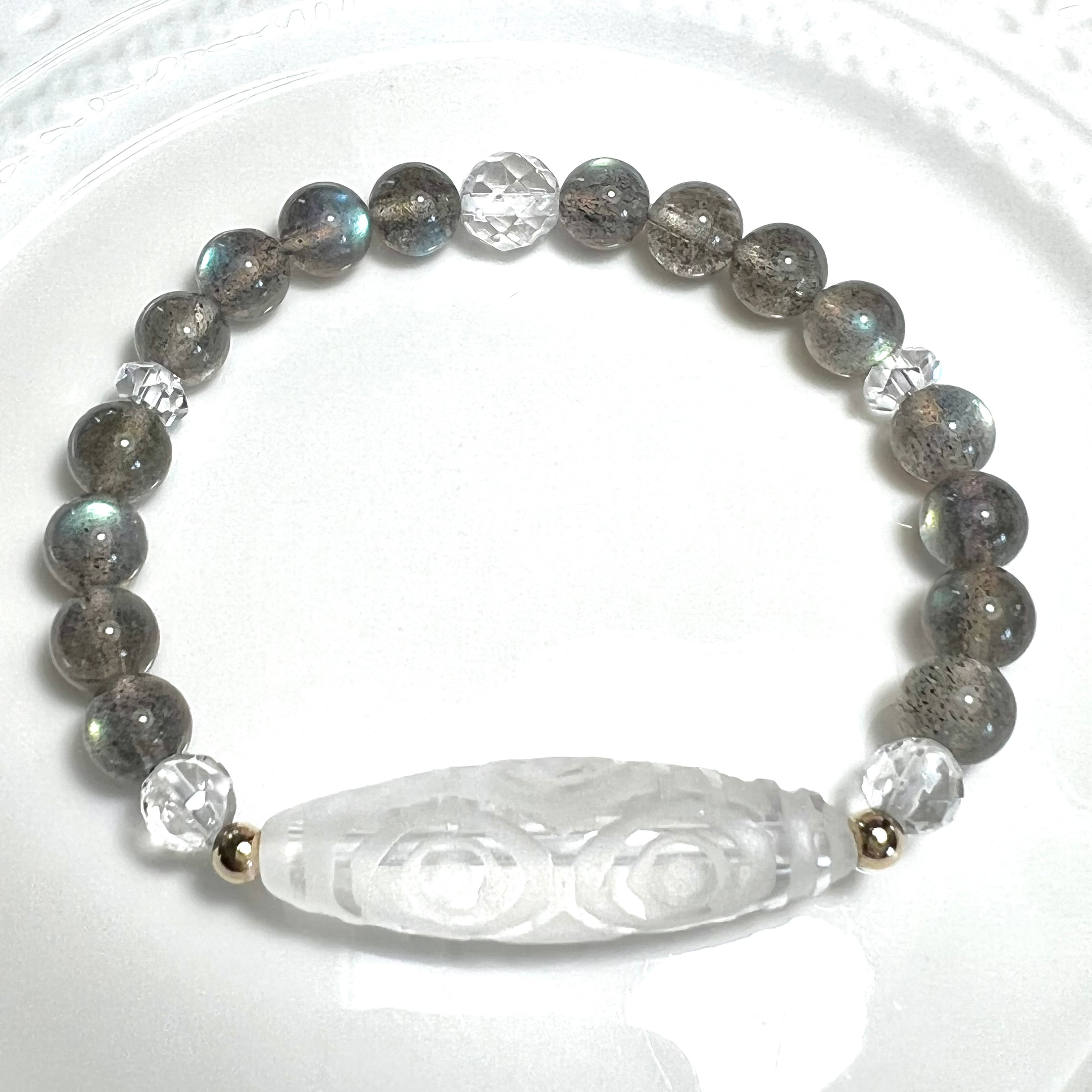 水晶天珠✨龍眼天珠とラブラドライトのブレスレット❣️