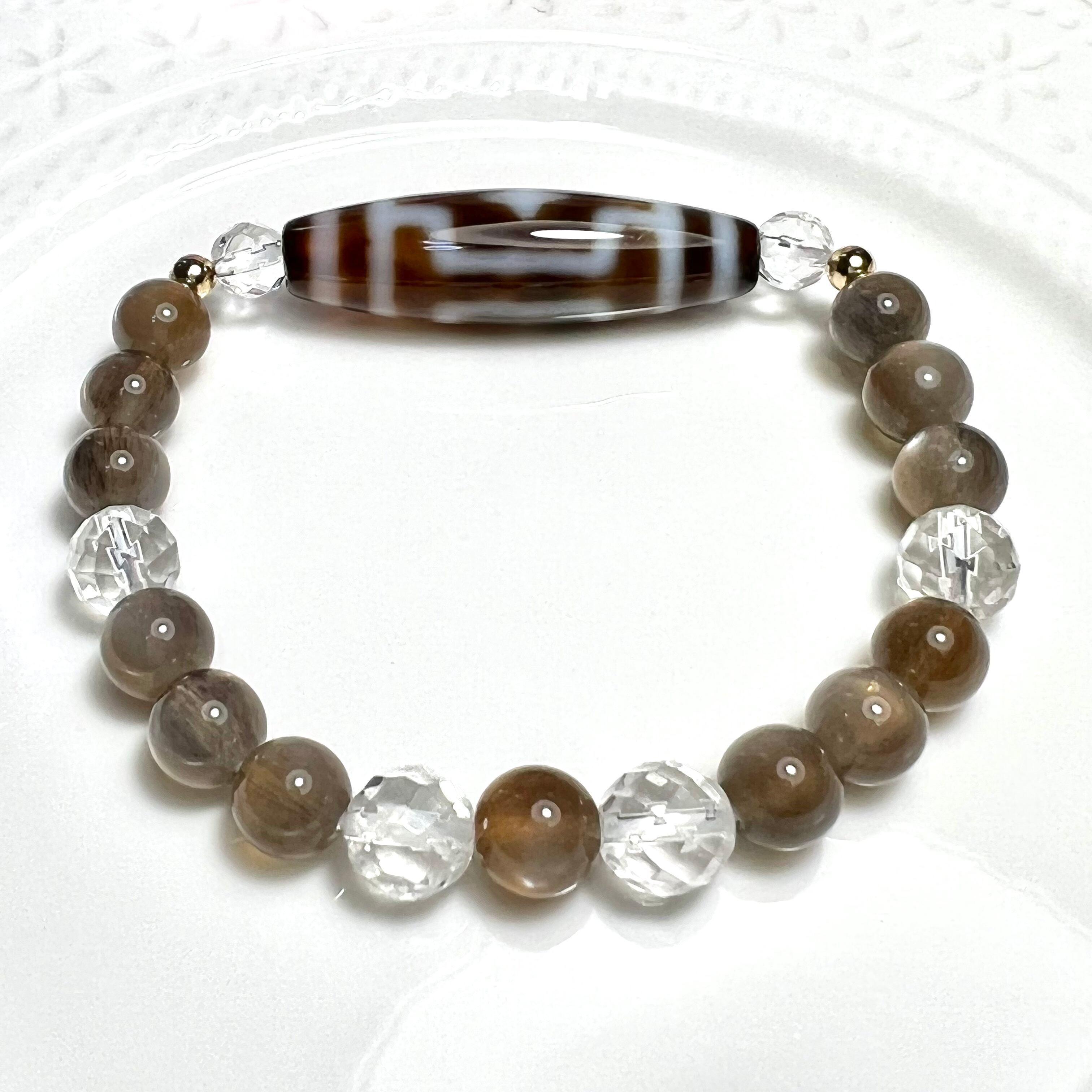 平安十字佛天珠とブラックサンムーンストーンと水晶のブレスレット❣️