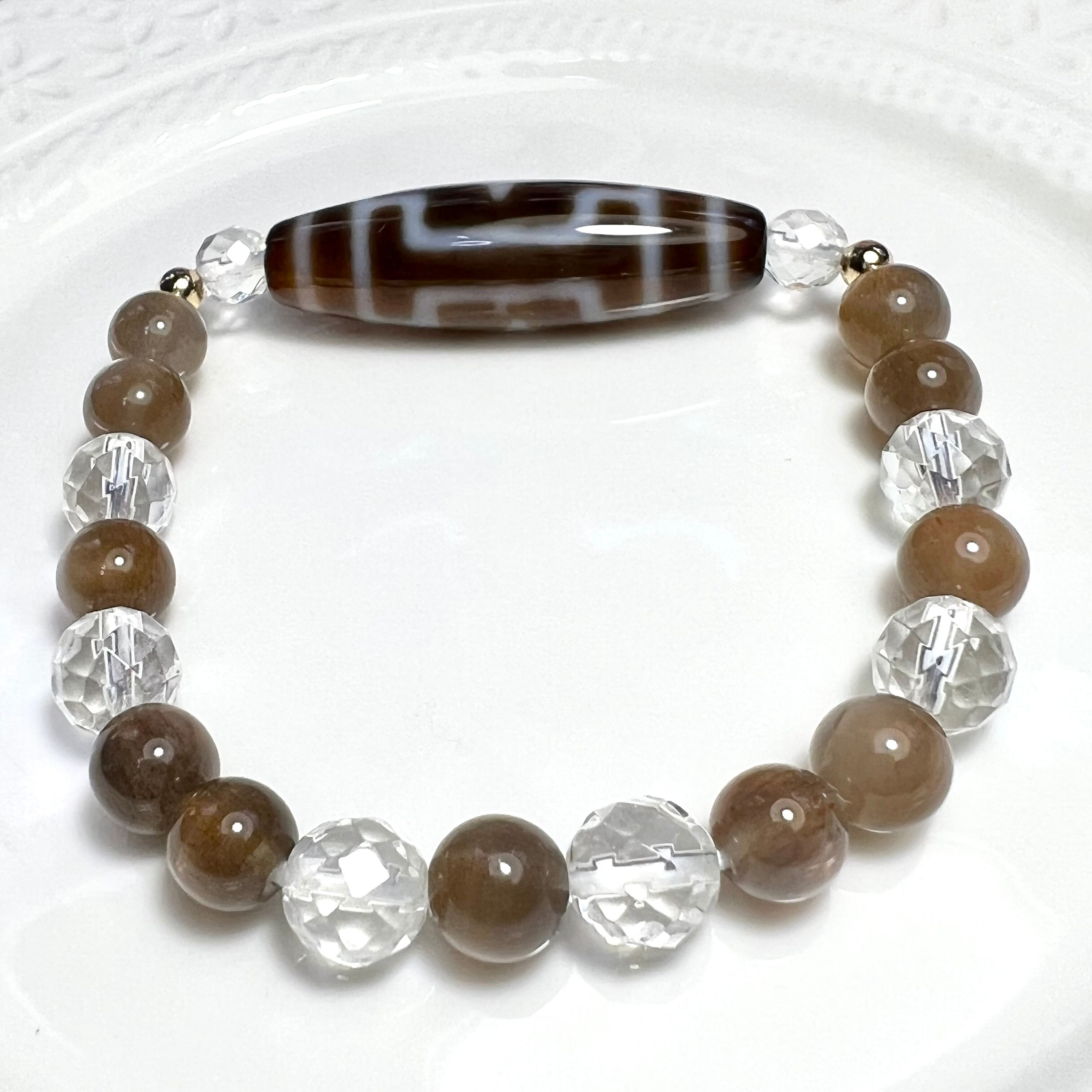平安十字佛天珠とブラックサンムーンストーンと水晶のブレスレット❣️