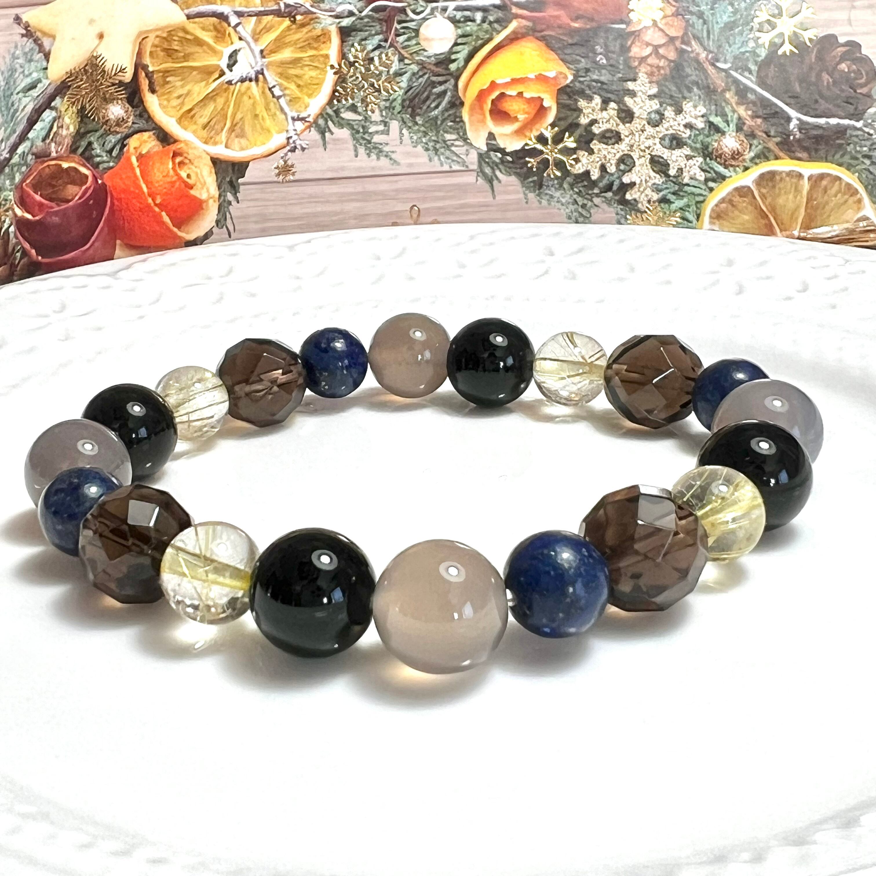 【専用ページ】10mmの邪気祓いのモリオンとグレーオニキス、ラピスラズリ、ルチルクォーツのブレスレット⭐️⭐️