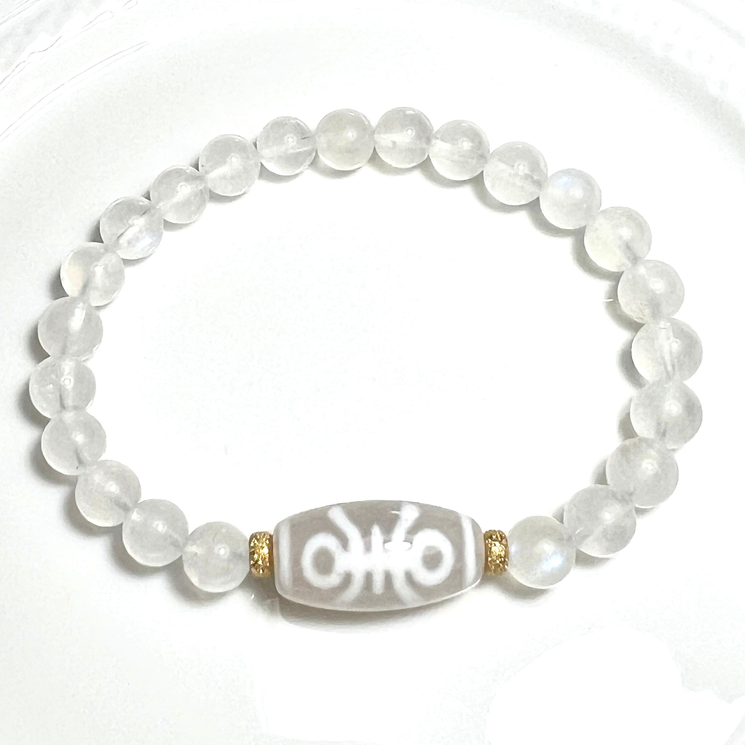 レアな老玉髄天珠・貴人天珠と6.5mmムーンストーンのブレスレット❣️