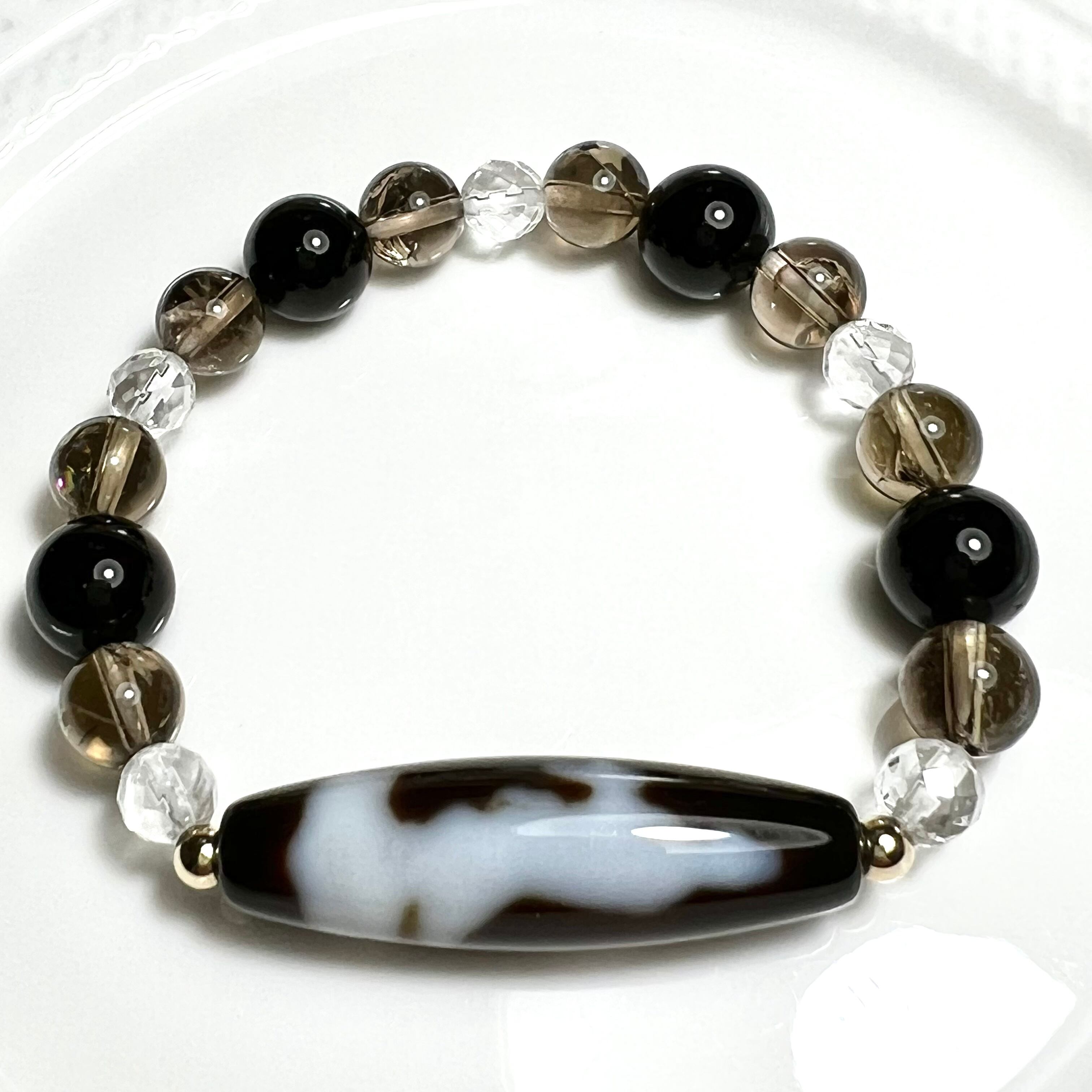 双観音天珠とモリオンとアイリススモーキークォーツと水晶のブレスレット❣️