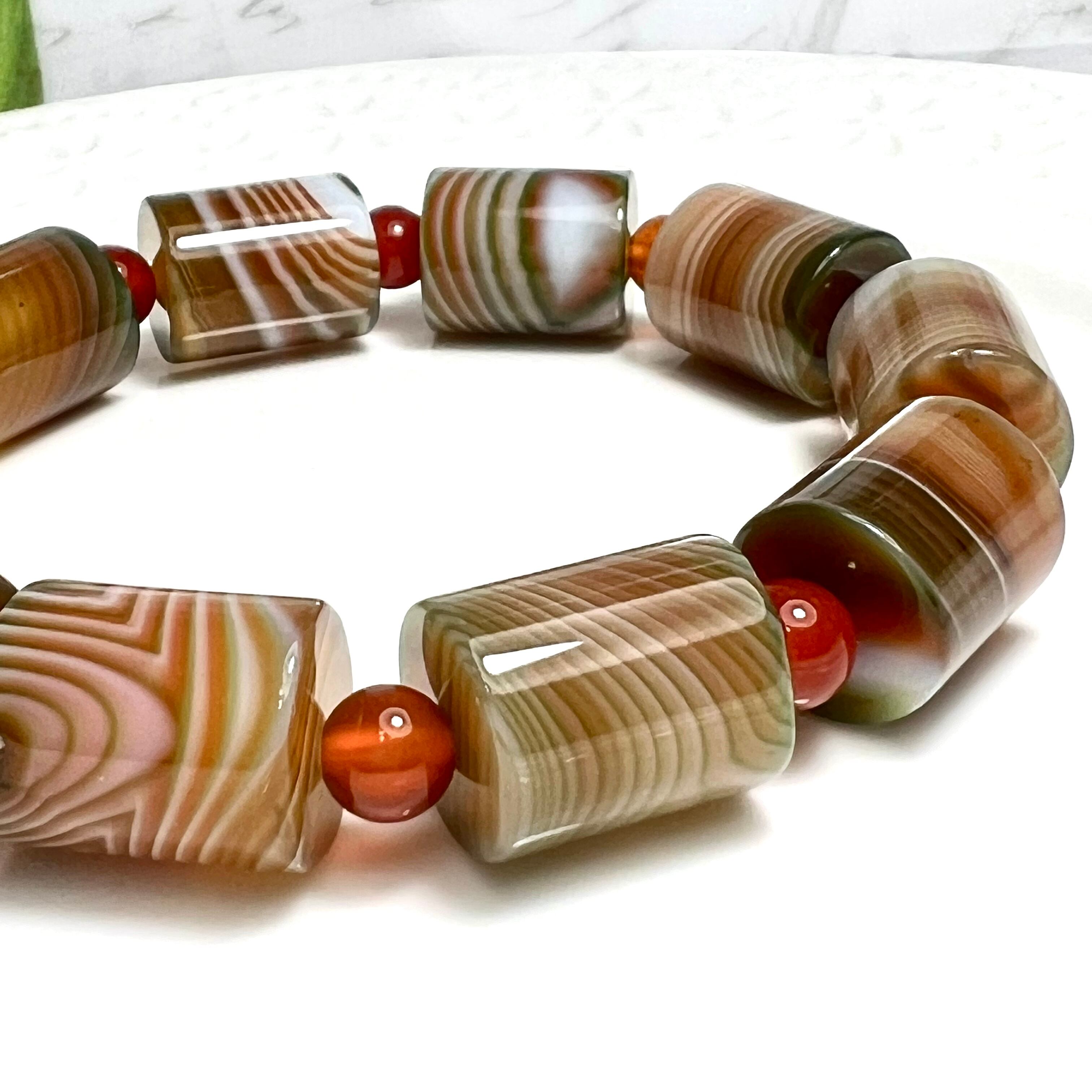 美しい縞模様の孔雀瑪瑙のチューブ型のブレスレット❣️❣