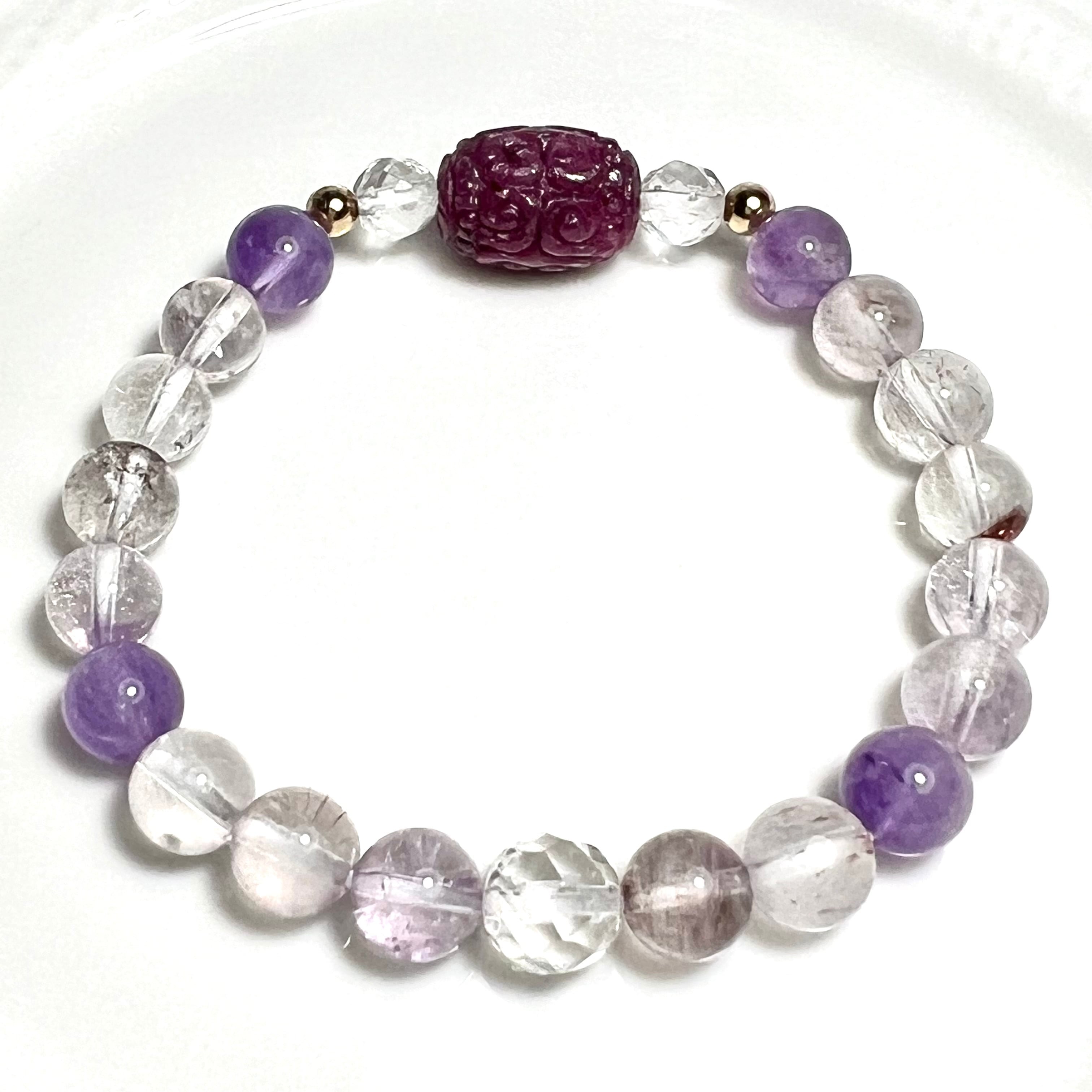 「勝利と情熱の石」ルビーのマニ車の天珠型とスーパーセブンのブレスレット❣️❣️