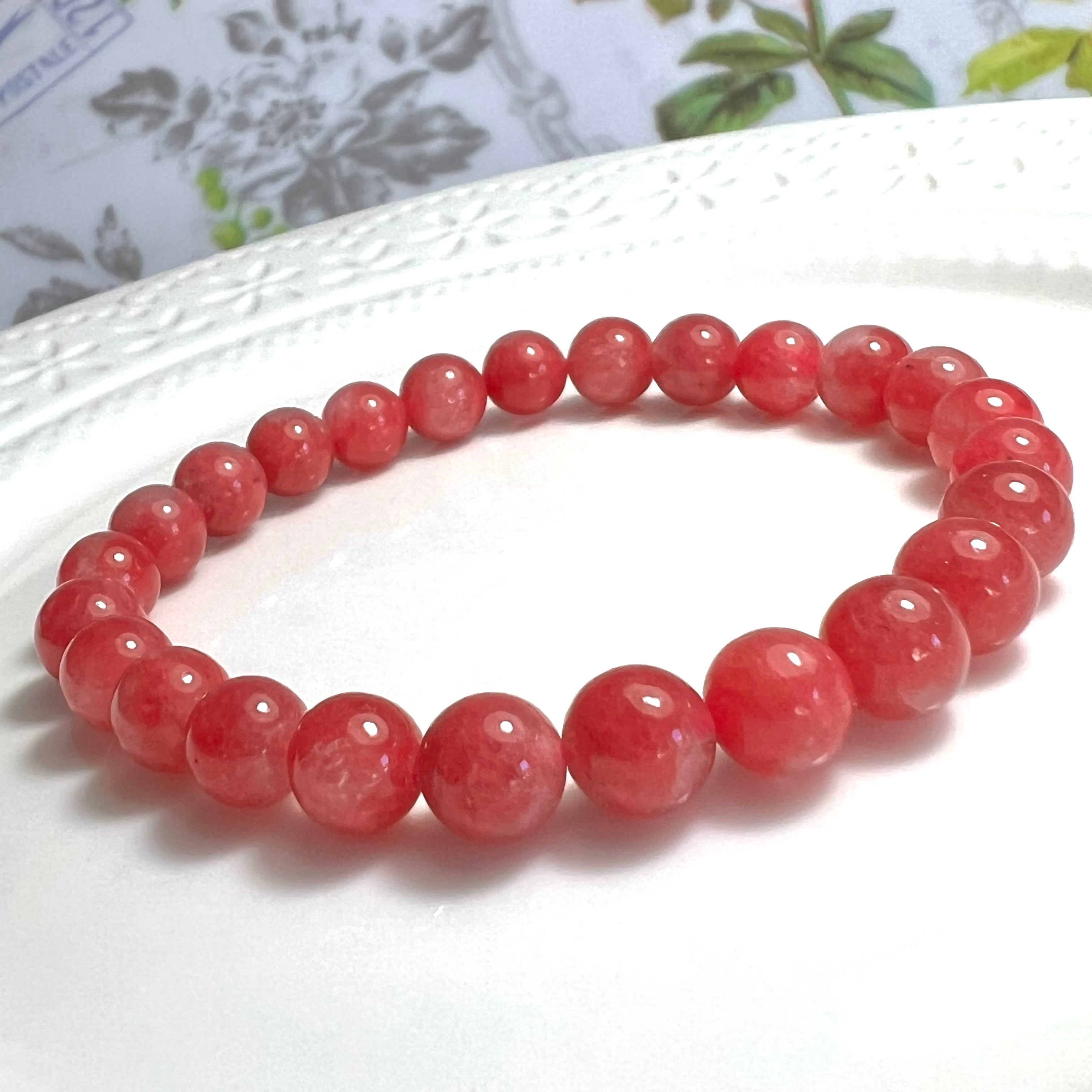 明るいチェリーピンクが可愛いロードナイトシリカのブレスレット❣️