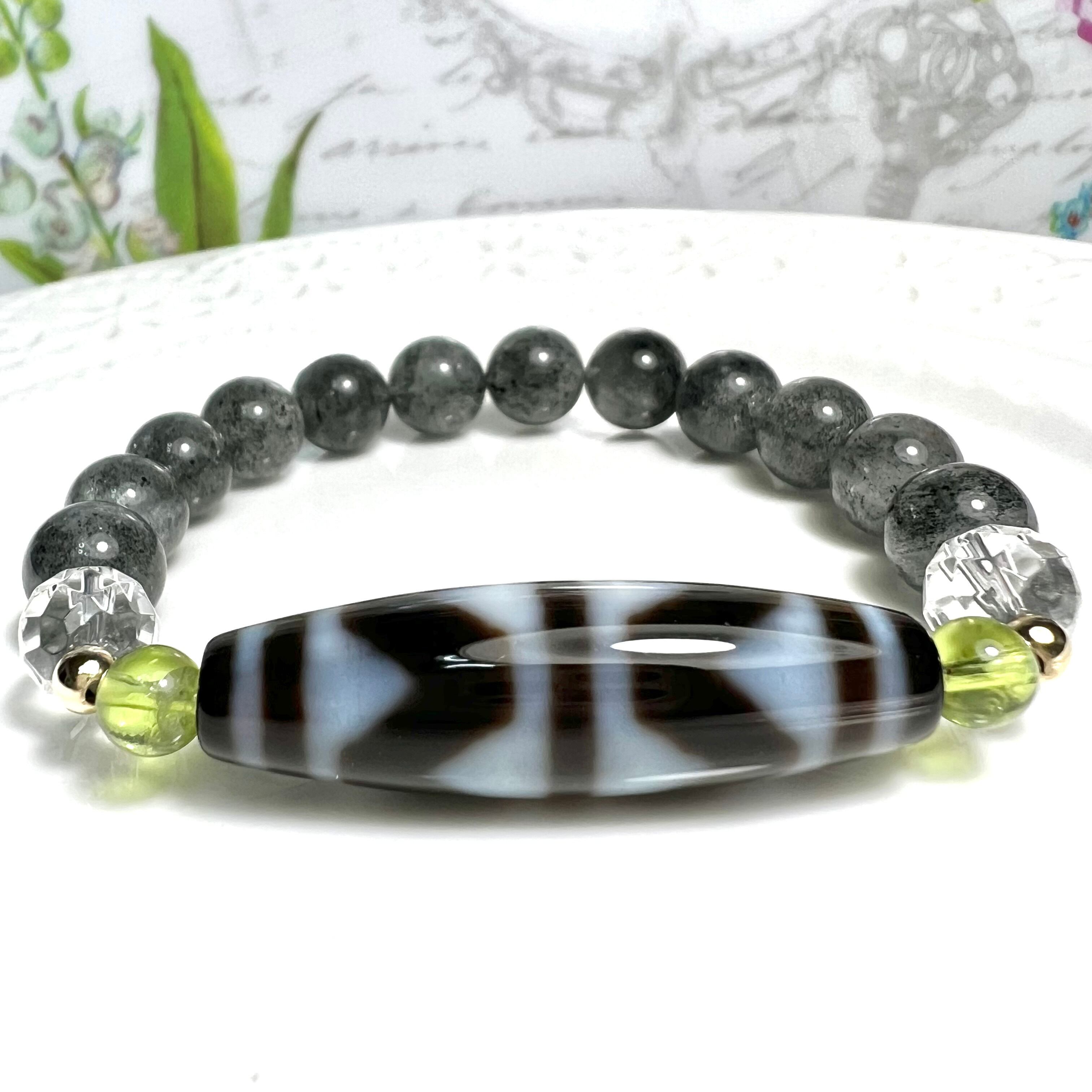 四線虎牙天珠と9mmのフィリフォーム・クリスタルインクォーツブレスレット❣️❣️