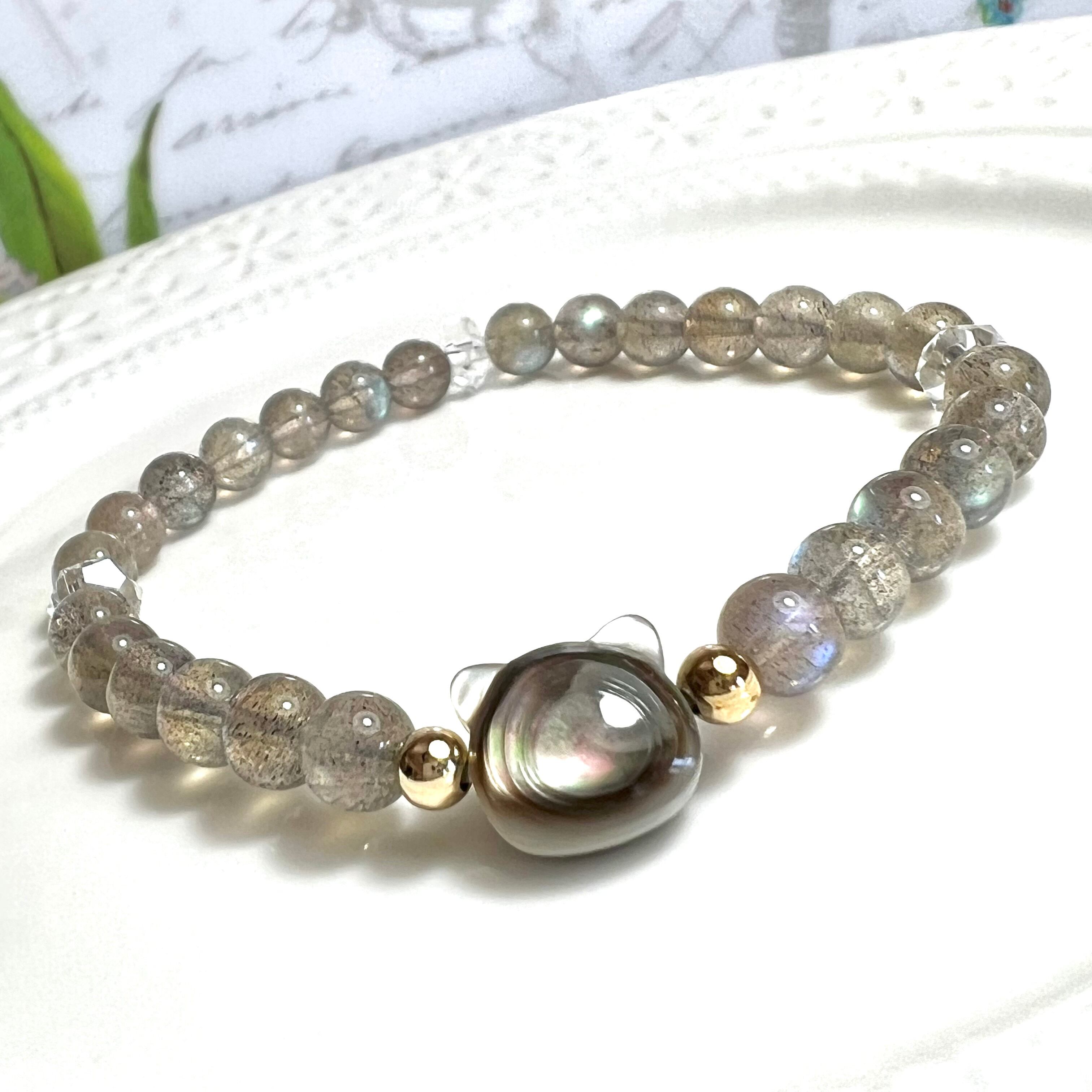 ブラックシェルの猫ちゃんと6mmのラブラドライトのブレスレット❣️❣️