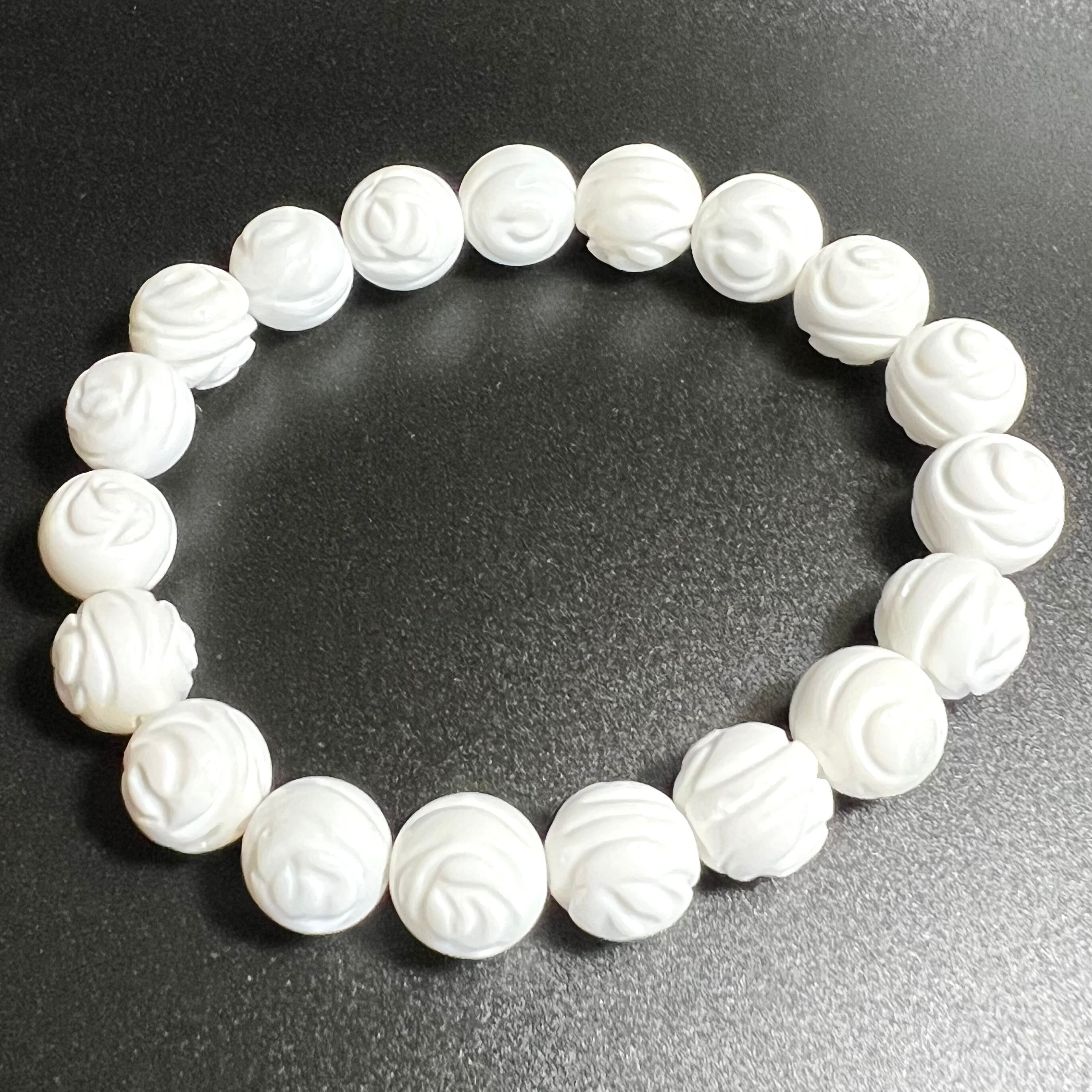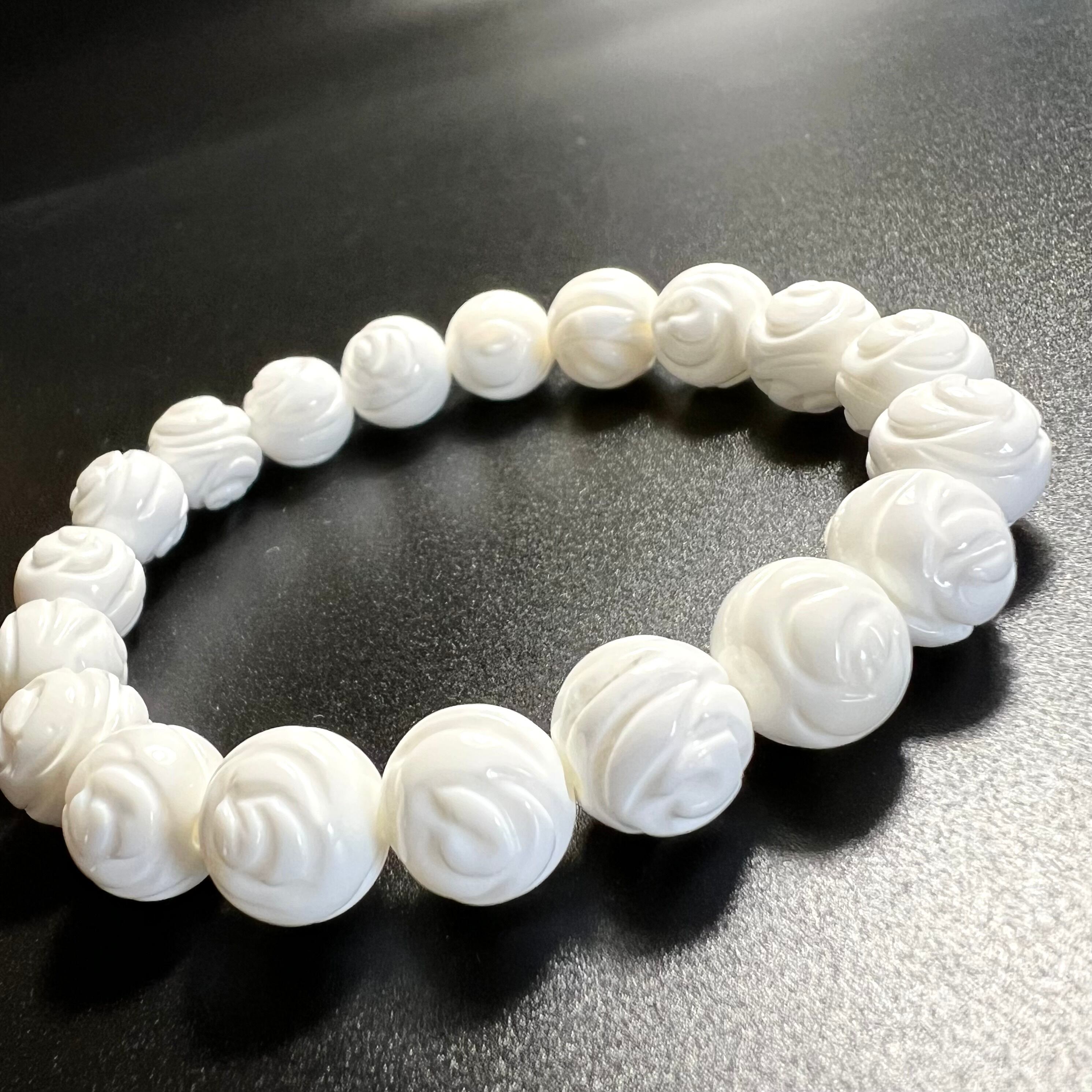 真っ白な美しい10mmの薔薇彫りのブレスレット❣️