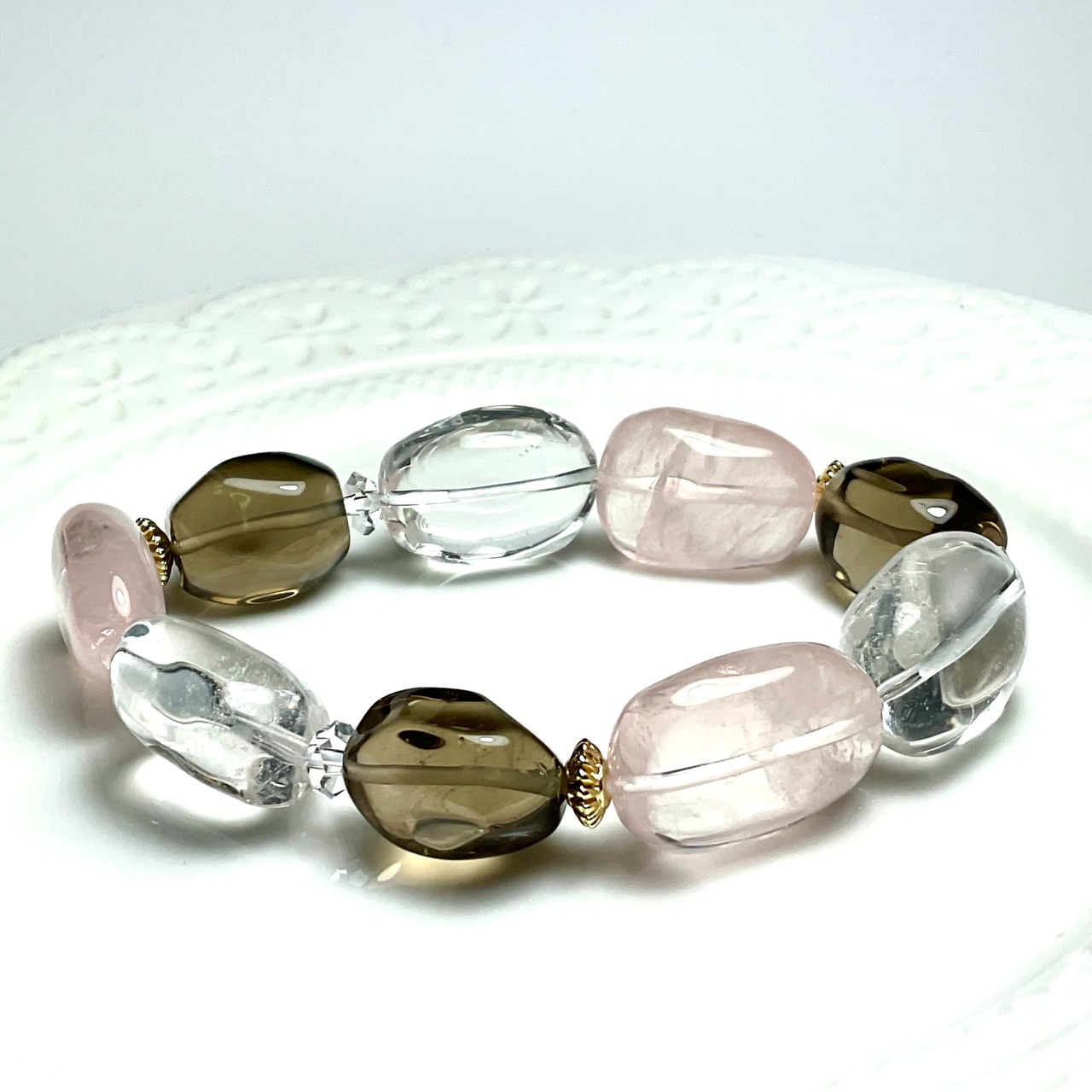 「大地とエネルギーを繋げる 」スモーキークォーツとローズクォーツと水晶のタンブルカットのブレスレット✨✨