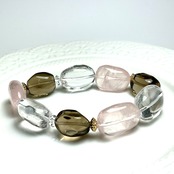 ピンクのローズクォーツと落ち着いた安心感を与えてくれるスモーキークォーツと「万能の石」水晶のころんとした丸みのあるタンブルカットの組み合わせです✨✨